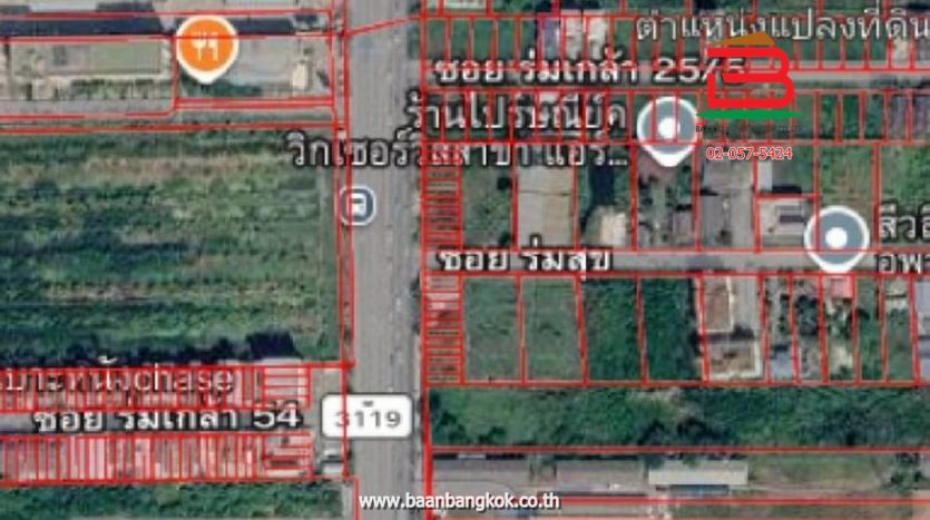 ประเภททรัพย์สิน : ที่ดินเปล่า ยังไม่ได้ถม พื้นที่สีเขียวทแยงขาว อ.๓ (ประเภทอนุรักษ์ชนบทและเกษตรกรรม) รูปสี่เหลี่ยม กว้างประมาณ 28.5 เมตร ลึกประมาณ 24 เมตร อยู่ห่างจากถนนเมนถนนร่มเกล้าประมาณ 150 เมตร ถนนกว้าง 6 เมตร บรรยากาศดี เหมาะสำหรับทำบ้านพักอาศัย ทำหอพัก หรือ สำนักงาน
