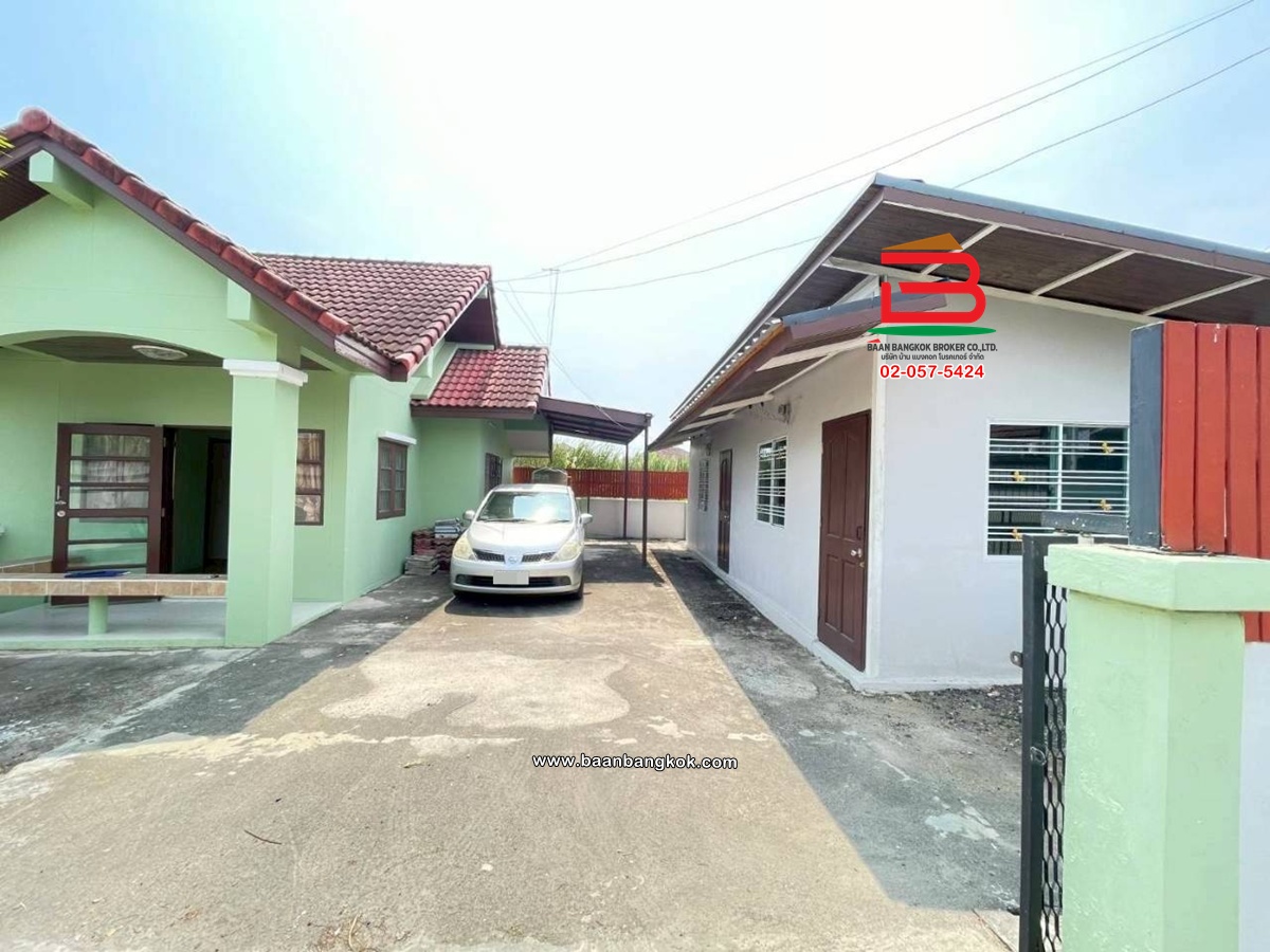 ประเภททรัพย์สินบ้านเดี่ยว ชั้นเดียว (พร้อมอยู่) มี 4 ห้องนอน 3 ห้องน้ำ 1 ห้องครัว 1 ห้องรับแขก และจอดรถได้ 3 คัน