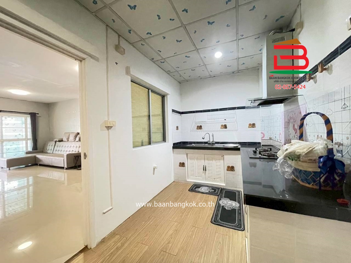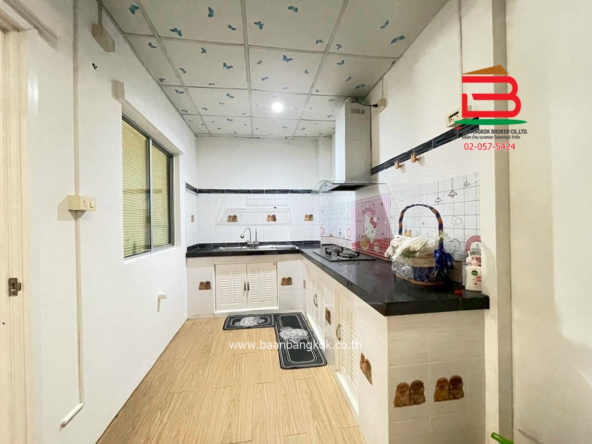 การตกแต่ง: ต่อเติมห้องครัวพร้อมเคาน์เตอร์และหลังคาหน้าบ้านพร้อมระแนงสองฝั่งมีแอร์สองตัวปั๊มน้ำ พร้อมแท๊งค์น้ำ เตาแก๊สฝัง เครื่องดูดควัน เครื่องทำ น้ำอุ่น   มีผ้าม่านทุกห้องเหล็กดัดทั้งบ้านจานดำ เฟอร์นิเจอร์บางส่วนพร้อมอยู่สงบเพื่อนบ้านดีเหมาะแก่การอยู่อาศัยเข้าซอยไม่ลึกอยู่ใน ซอย 6 อยู่ต้นซอยความปลอดภัยรปภ. 24 ชั่วโมง