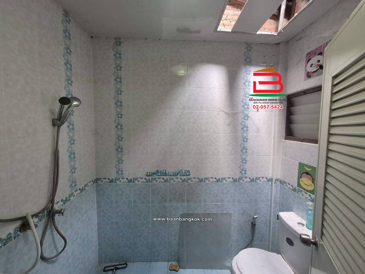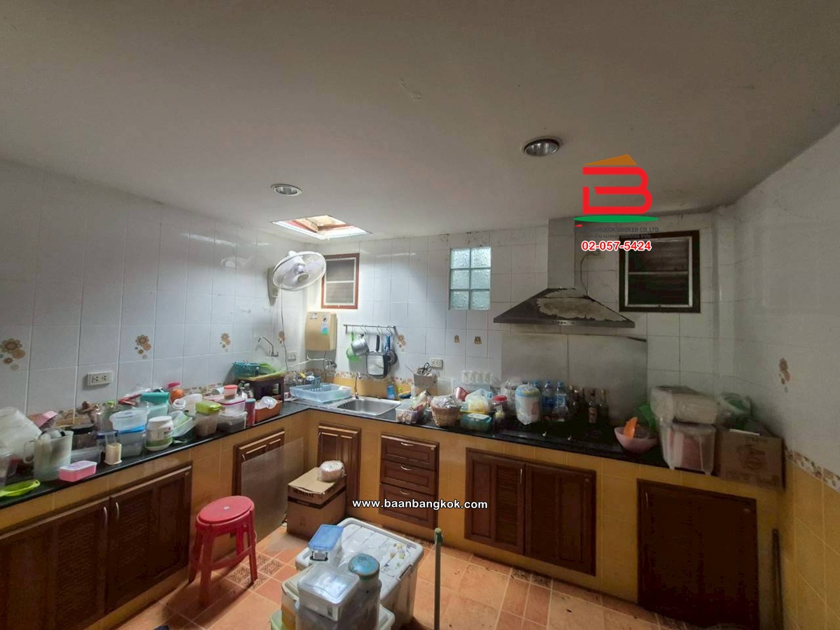 การตกแต่ง: ต่อเติมหลังคาที่จอดรถ ต่อเติมครัว มีปั้มน้ำ-แท็งค์น้ำ ชั้นล่างและชั้นบนปูพื้นกระเบื้อง ติดมุ้งลวด-เหล็กดัด พร้อมแอร์