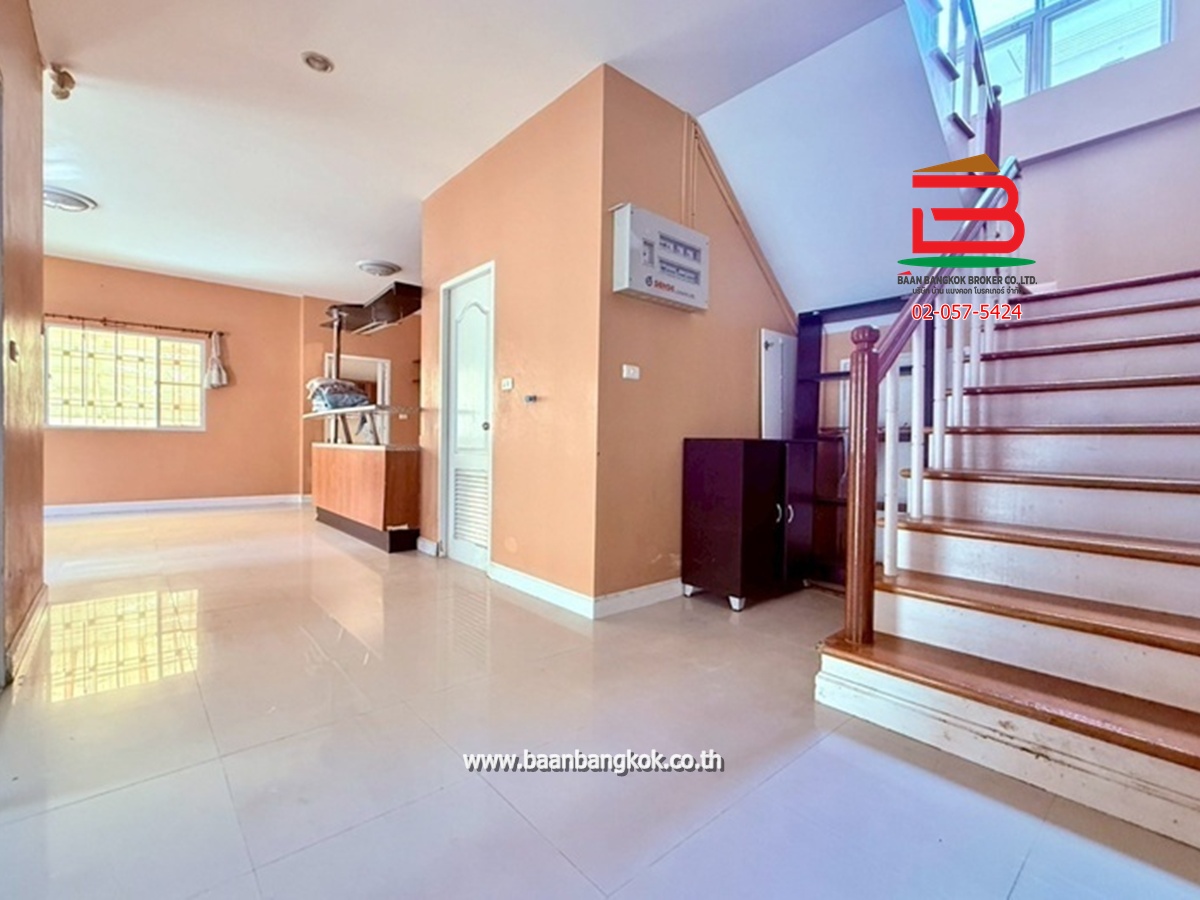 การตกแต่ง : ด้านข้างของบ้านมีบริเวณกว้าง มีต้นไม้ ร่มรื่น และเงียบสงบ ชั้นล่างปูด้วยกระเบื้องแกรนิตโต้ พื้นชั้นบนปูด้วยไม้ปาเก้ ภายในติดมุ้งลวด, เหล็กดัด, ปั้มน้ำ, แท็งค์น้ำ แอร์ 5 เครื่อง ในโครงการมีสิ่งอำนวยความสะดวก อาทิ สนามเด็กเล่น, สระว่ายน้ำ, ฟิตเนส, สโมสร, CCTV, รปภ.24ชม.