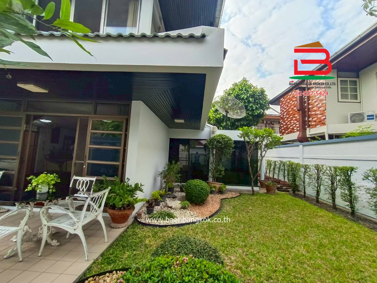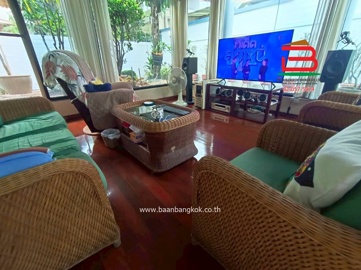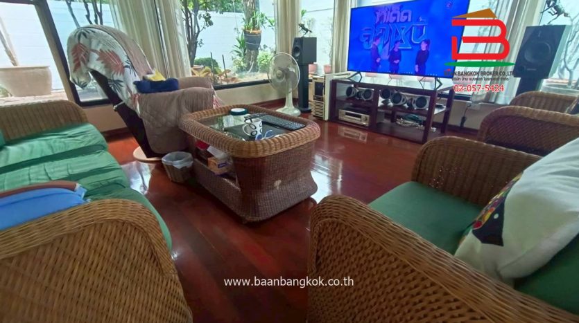 การตกแต่ง: พื้นปูปาร์เก้ทั้ง 2 ชั้นชั้นบนมี 2ห้องนอนใหญ่พร้อมห้องน้ำในตัว และ1 ห้องนอนเล็ก ชั้นล่างแบ่งเป็นสัดส่วน มีห้องรับแขก,ห้องนั่งเล่นริมสวนกั้นด้วยกระจกสามารถมองเห็นวิวรอบบ้าน,ครัวนอกครัวใน ,มีห้องน้ำ 2 ห้อง,ห้องแม่บ้านพร้อมห้องน้ำแม่บ้านด้านข้างต่อเติมเป็นโรงจอดรถจอดรถได้ 2 คัน,มีแอร์ 4 เครื่องและแถมเฟอร์บางส่วน บรรยากาศรอบบ้านร่มรื่นปกคลุมไปด้วยต้นไม้ดอก-ไม้ประดับ จัดสวนได้ลงตัว สิ่งแวดล้อมโดยรวมดีมาก