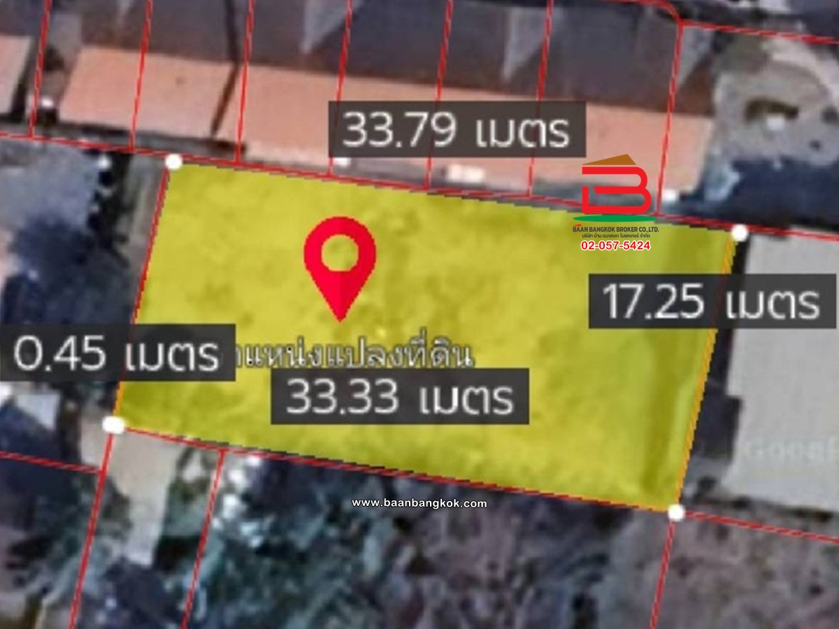 ประเภททรัพย์สิน : ที่ดินเปล่า (ถมแล้ว) แปลงริม หน้าที่ดินกว้าง 33 เมตร ลึก 17 เมตร น้ำปะปา+ไฟฟ้าเข้าถึง มีท่อระบายน้ำ ถนนหน้าแปลงคอนกรีตกว้าง 5 เมตร หน้าแปลงหันหน้าไปทางทิศตะวันตก เเปลงสวย ทำเลดีมาก เข้าจากซอยหลัก 100 เมตร เหมาะทำเป็นที่พักอาศัย ออฟฟิศ สำนักงาน โกดังสินค้า การเดินทางเข้า-ออกสะดวกได้หลายช่องทาง