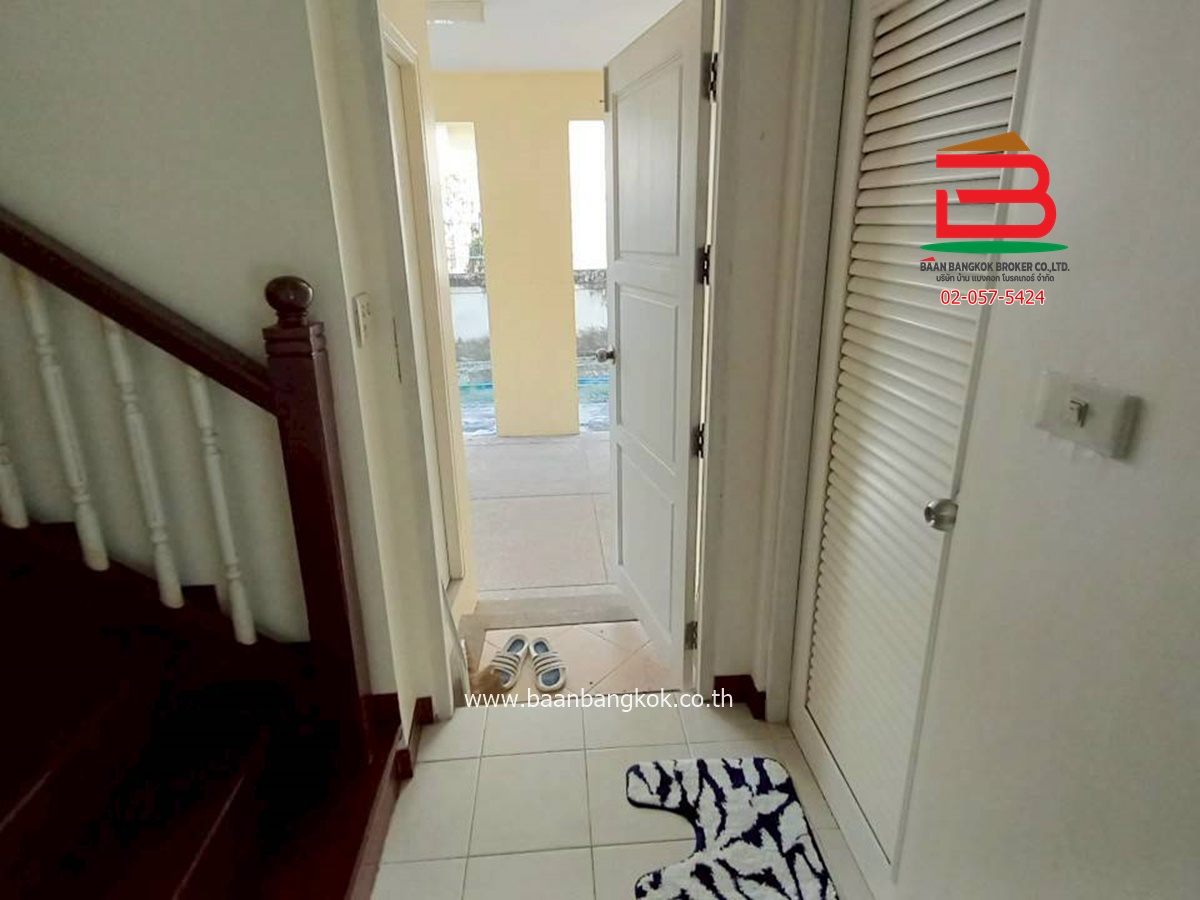 การตกแต่ง : พื้นห้องชั้นล่างจะปูด้วยกระเบื้องส่วนพื้นห้องชั้นบน จะพูดด้วยปาเก้บันไดทางขึ้นเป็นบันไดไม้สวยงาม ฝ้าเพดานจะเป็นฝ้าเรียบ ภายในบ้านติดตั้งมุ้งลวดพร้อมผ้าม่านให้เรียบร้อย แถมแอร์ให้ 2 เครื่องพร้อมปั๊มน้ำและแทงค์น้ำ ” มีพื้นที่โซนหน้าบ้าน สามารถ ปลูกไม้ผล หรือ พืชผักสวนครัว หรือไม้ดอกประดับได้บรรยากาศในหมู่บ้านเงียบ สงบร่มรื่น เย็นสบายโหมดส่วนตัว เพื่อนบ้านน่ารักอัธยาศัยดี เหมาะสำหรับกลุ่มลูกค้าที่หาบ้านพักหมดส่วนตัวหลังใหญ่ หลังนี้ตอบโจทย์เลย โครงการติดถนนสุวินทวงศ์ โลเคชั่นแวดล้อมไปด้วยห้างสรรพสินค้าชั้นนำ ศูนย์หน่วยงานราชการต่างๆ ตลาดนัดชุมชน หาซื้อของทานได้ง่าย การเดินทาง เข้า-ออก สะดวกสบายหลายเส้นทาง ” ทรัพย์สวยทำเลดีขายราคาถูกน่าลงทุน