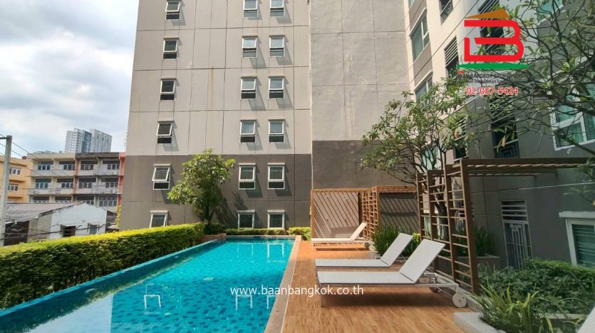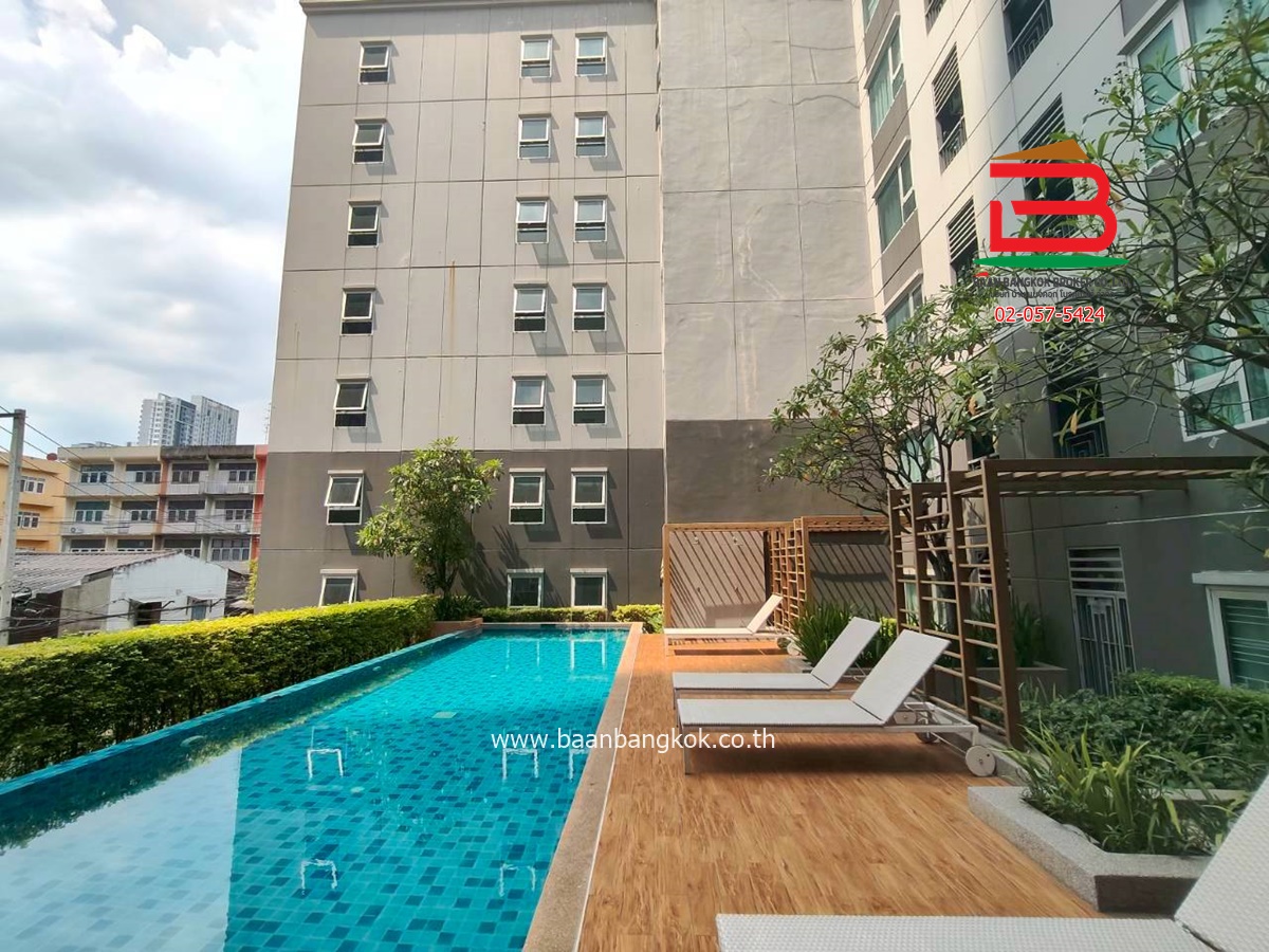 ประเภททรัพย์สิน : คอนโดมิเนียม สูง 8 ชั้น อยู่ชั้นที่ 3 ห้องสตูดิโอ 1 ห้องนอน 1 ห้องโถงรับแขก 1 ห้องครัว 1 ห้องน้ำ ระเบียง