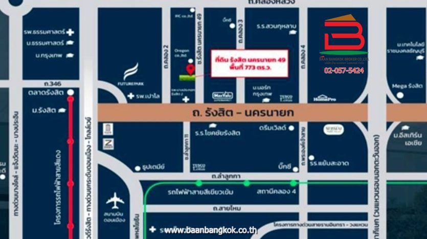 11580, ที่ดินเปล่า เนื้อที่ 1-3-73 ไร่ ถนนรังสิต-นครนายก 49 (ใกล้โรงเรียนโชคชัยรังสิต) ตำบลประชาธิปัตย์ อำเภอธัญบุรี จังหวัดปทุมธานี
