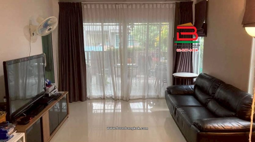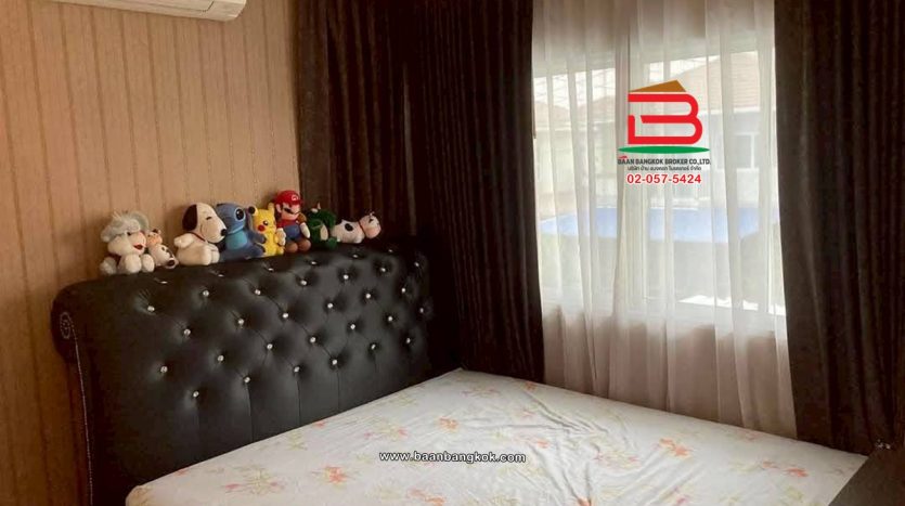 การตกแต่ง :  บ้านเดี่ยว 2 ชั้นพร้อมอยู่ ฟังก์ชันประกอบด้วย 3 ห้องนอน 2 ห้องน้ำ 1 ห้องครัว 1 ห้องโถงนั่งเล่นพร้อมระเบียงหน้าบ้าน พร้อมที่จอดรถได้ 2 คัน บ้านหันหน้าออกไปทางทิศใต้ พื้นห้องชั้นล่างจะปูด้วยแกรนิตโต้ พื้นห้องชั้นบนจะเป็นพื้นลามิเนต โซนหน้าบ้านต่อเติมโรงจอดรถพร้อมปูกระเบื้องให้เรียบร้อยมีพื้นที่บริเวณข้างบ้านสามารถจัดเป็นมุมสวนไม้ดอกไม้ประดับ หรือปลูกพืชผักสวนครัวตามความต้องการได้ภายในบ้านติดเหล็กดัดมุ้งลวดผ้าม่านแถมปั๊มน้ำและแทงค์น้ำให้ พร้อมแอร์ 3 เครื่อง ภายในโครงการมีสิ่งอำนวยความสะดวกอาทิเช่นระบบรักษาความปลอดภัยตลอด 24 ชั่วโมงสนามเด็กเล่นทำเลหมู่บ้านเป็นแหล่งชุมชนมีร้านค้าสะดวกซื้อตลาดสดร้านอาหารครบครันสะดวกสบายใกล้ห้างสรรพสินค้าศูนย์หน่วยงานราชการต่างๆ การเดินทางเข้าออกสะดวกสบายหลายเส้นทาง ” ทรัพย์ส่วยทำเลดีน่าลงทุน “