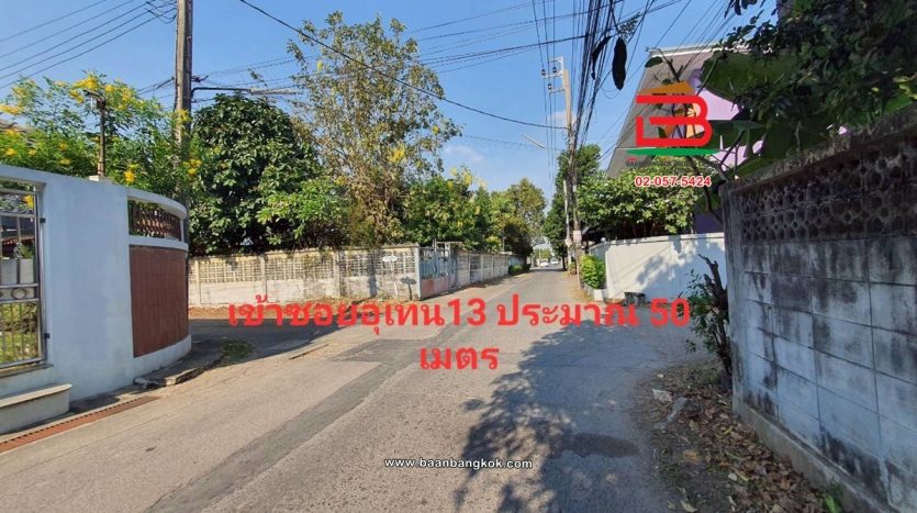 ประเภททรัพย์สิน : ที่ดินเปล่า ถมแล้ว เนื้อที่ 100 ตารางวา หน้ากว้าง 16 เมตร ลึก 25 เมตร อยู่ในโครงการหมู่บ้านศรีนครพัฒนา ซอยอุเทน 13 ถนนหน้าแปลงที่ดินกว้าง 6 เมตร ทำเลดี เหมาะสำหรับสร้างเป็นที่อยู่อาศัย หันหน้าไปทางทิศตะวันออก