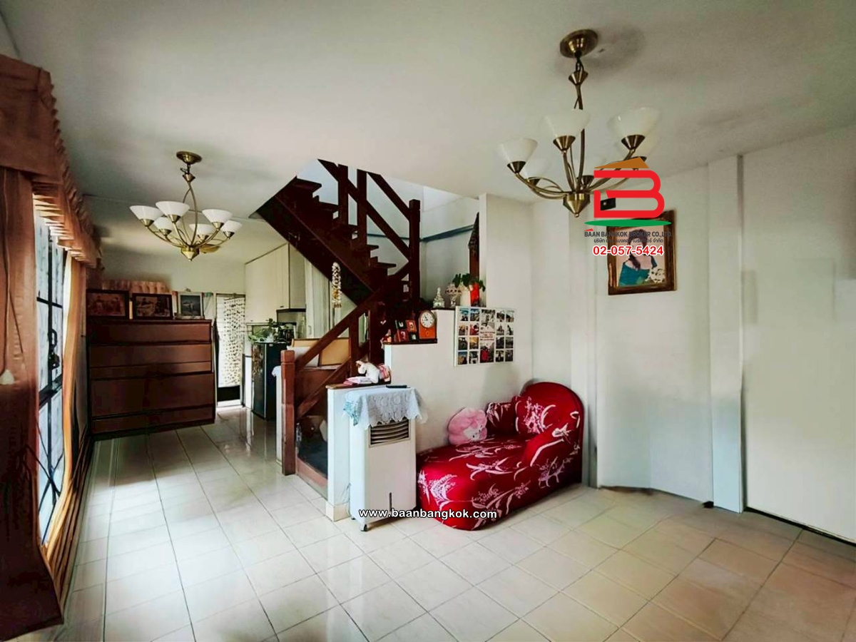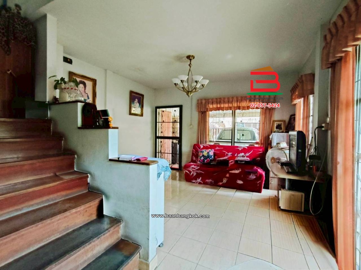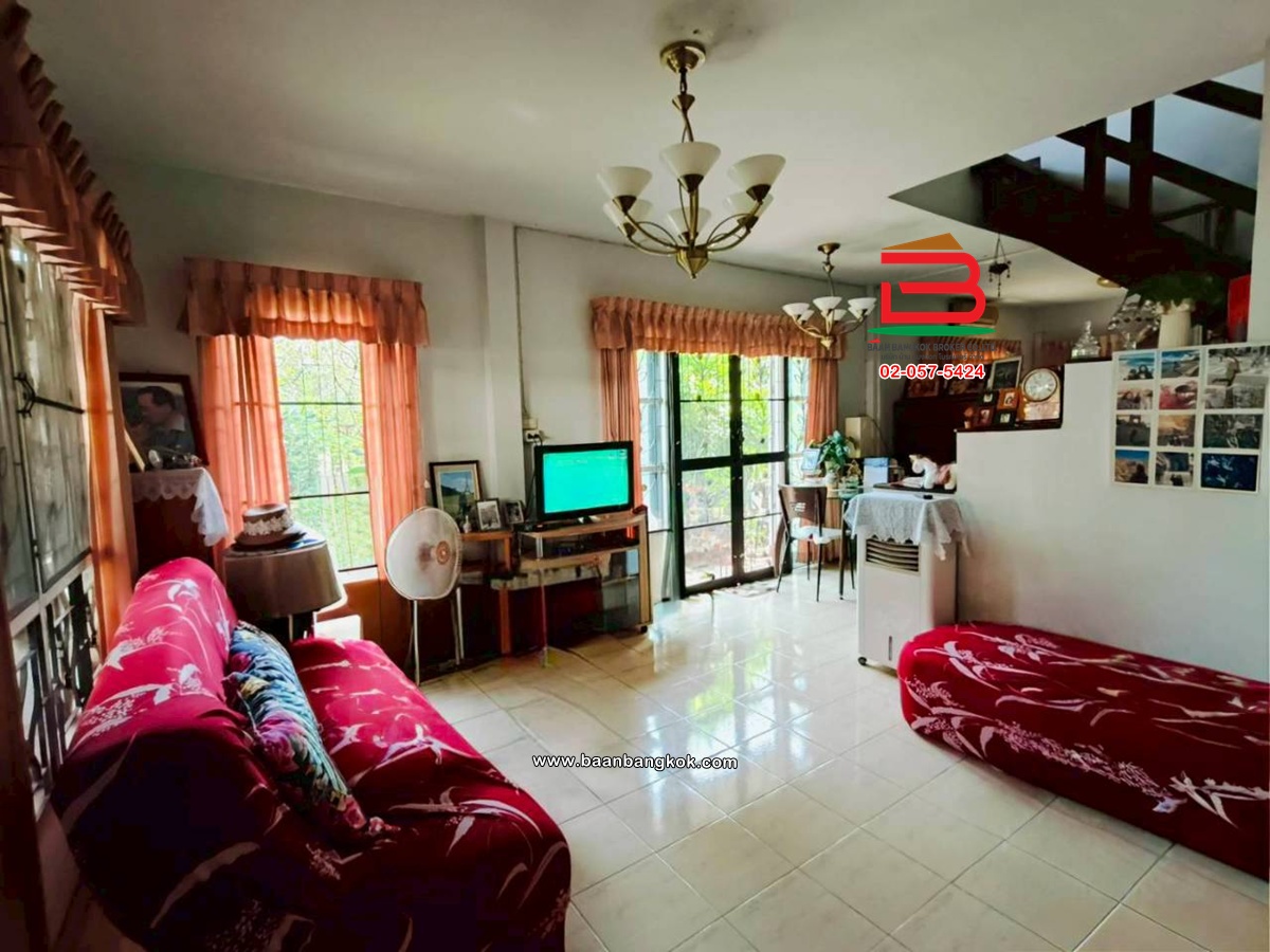 การตกแต่ง: มีพื้นที่ด้านข้างเหลือเยอะ สามารถต่อเติมเพิ่มได้สภาพแวดล้อมเงียบสงบ เหมาะแก่การพักอาศัย อยู่ติดกับโซนบ้านเดี่ยวไม่แออัด มีเฟอร์นิเจอร์บางส่วน ติดมุ้งลวด-เหล็กดัด พร้อมแอร์ พื้นบ้านชั้นบนเป็นปาร์เก้ พื้นบ้านชั้นล่างปูกระเบื้อง ต่อเติมครัว มีปั้มน้ำ แล้วต่อเติมหลังคาโรงจอดรถ