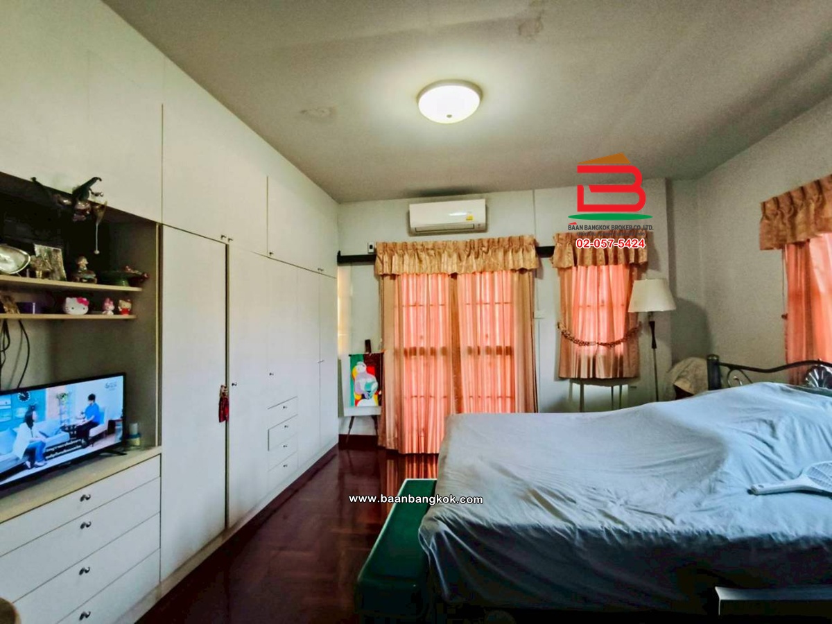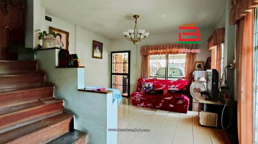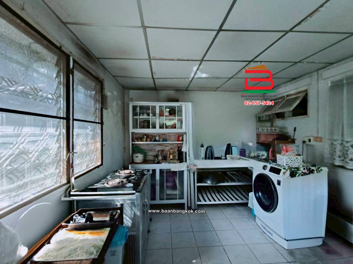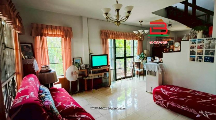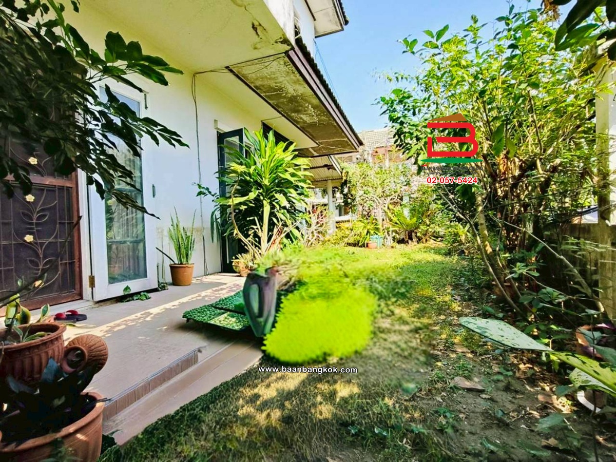 การตกแต่ง: มีพื้นที่ด้านข้างเหลือเยอะ สามารถต่อเติมเพิ่มได้สภาพแวดล้อมเงียบสงบ เหมาะแก่การพักอาศัย อยู่ติดกับโซนบ้านเดี่ยวไม่แออัด มีเฟอร์นิเจอร์บางส่วน ติดมุ้งลวด-เหล็กดัด พร้อมแอร์ พื้นบ้านชั้นบนเป็นปาร์เก้ พื้นบ้านชั้นล่างปูกระเบื้อง ต่อเติมครัว มีปั้มน้ำ แล้วต่อเติมหลังคาโรงจอดรถ