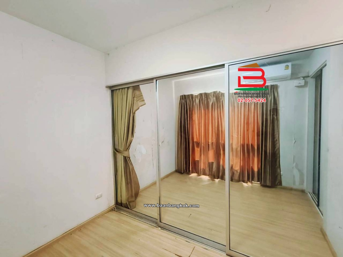 การตกแต่งขายพร้อมเฟอร์นิเจอร์บางส่วน ปูพื้นด้วยลามิเนตกำแพงห้องติดวอลเปเปอร์ พร้อมเฟอร์นิเจอร์ เตียงนอน-ที่นอน ตู้เสื้อผ้าbuilt in อ่างล้างจาน ผ้าม่าน มีระเบียง ติดมุ้งลวดกันนก