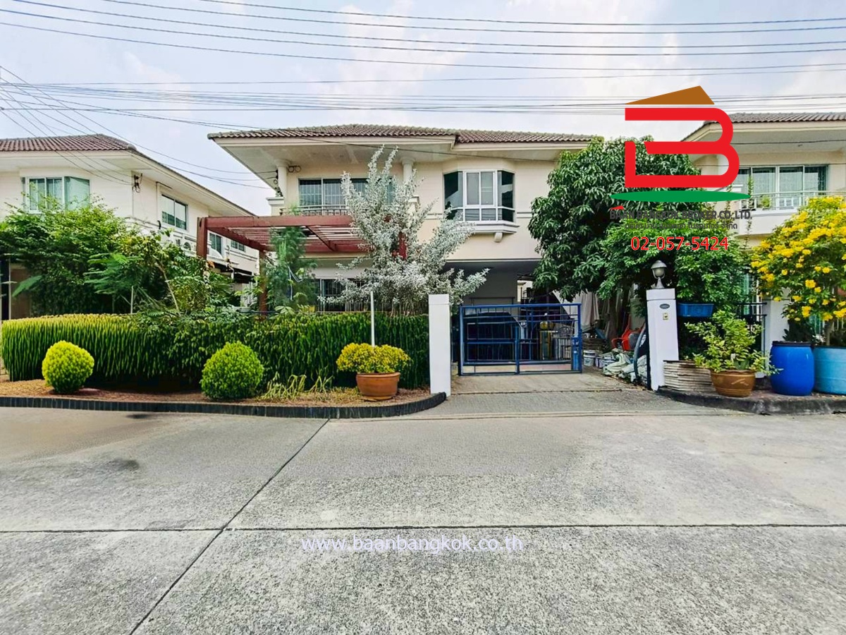 การตกแต่ง : พื้นปูกระเบื้องแกรนิตโต้ ห้อง master bedroom ซึ่งเป็นห้องใหญ่ที่สุดในบ้าน มีห้องน้ำในตัว ภายในบ้านติดมุ้งลวด, เหล็กดัด, ปั้มน้ำ, แท็งค์น้ำ, แอร์ บรรยากาศในโครงการเน้นความร่มรื่นด้วยไม้นานาพันธุ์ มีระบบรักษาความปลอดภัย 24 ชั่วโมง กล้อง CCTV ฟิตเนส สวนสาธารณะออกกำลังกาย สนามเด็กเล่น