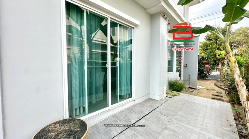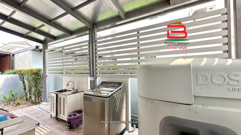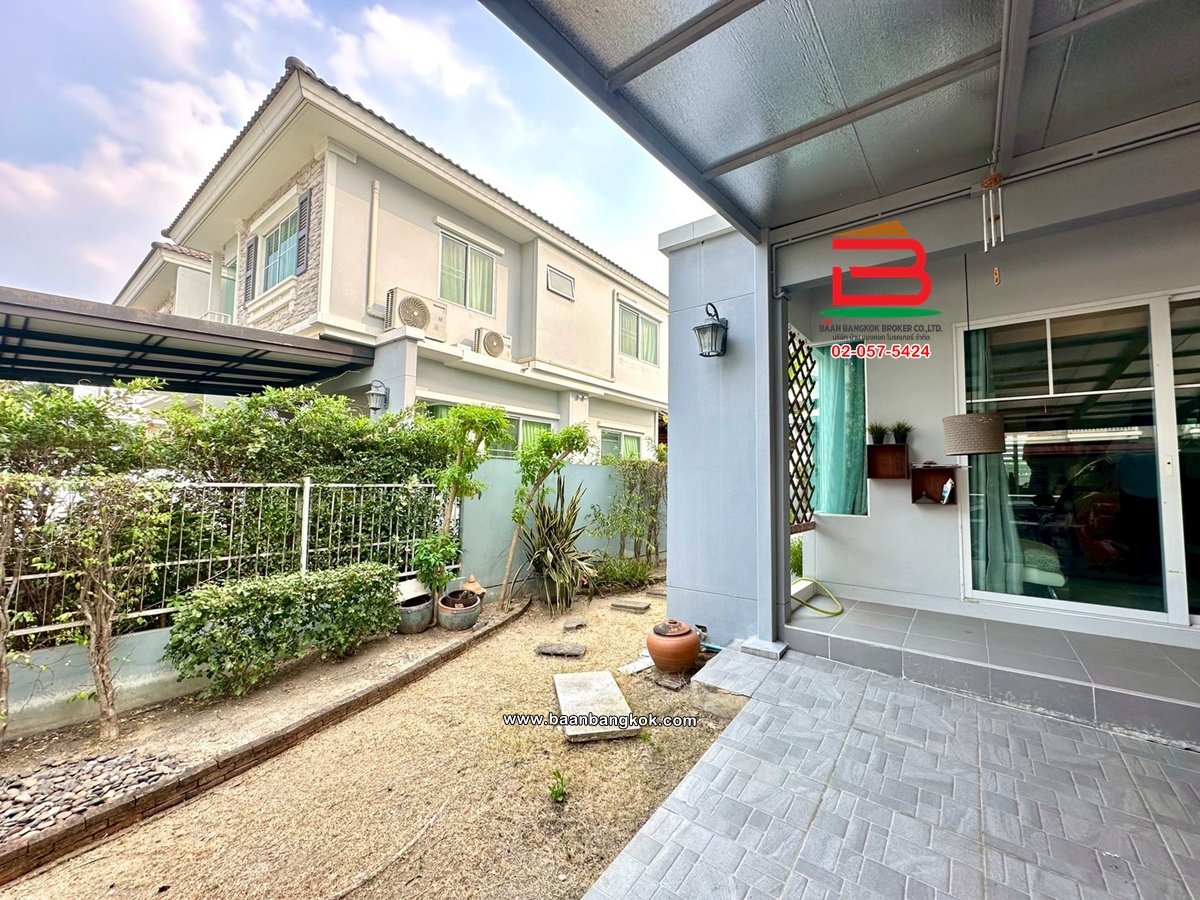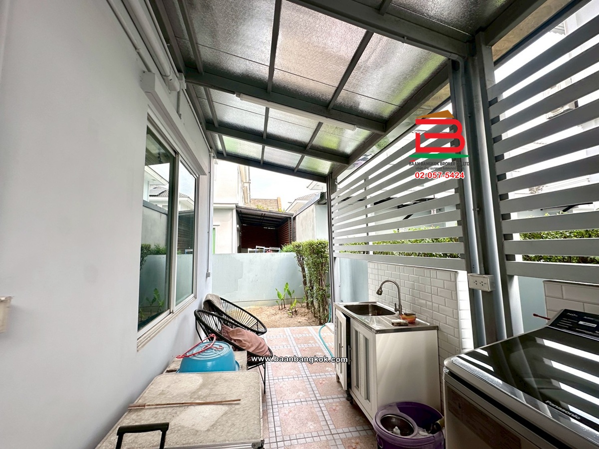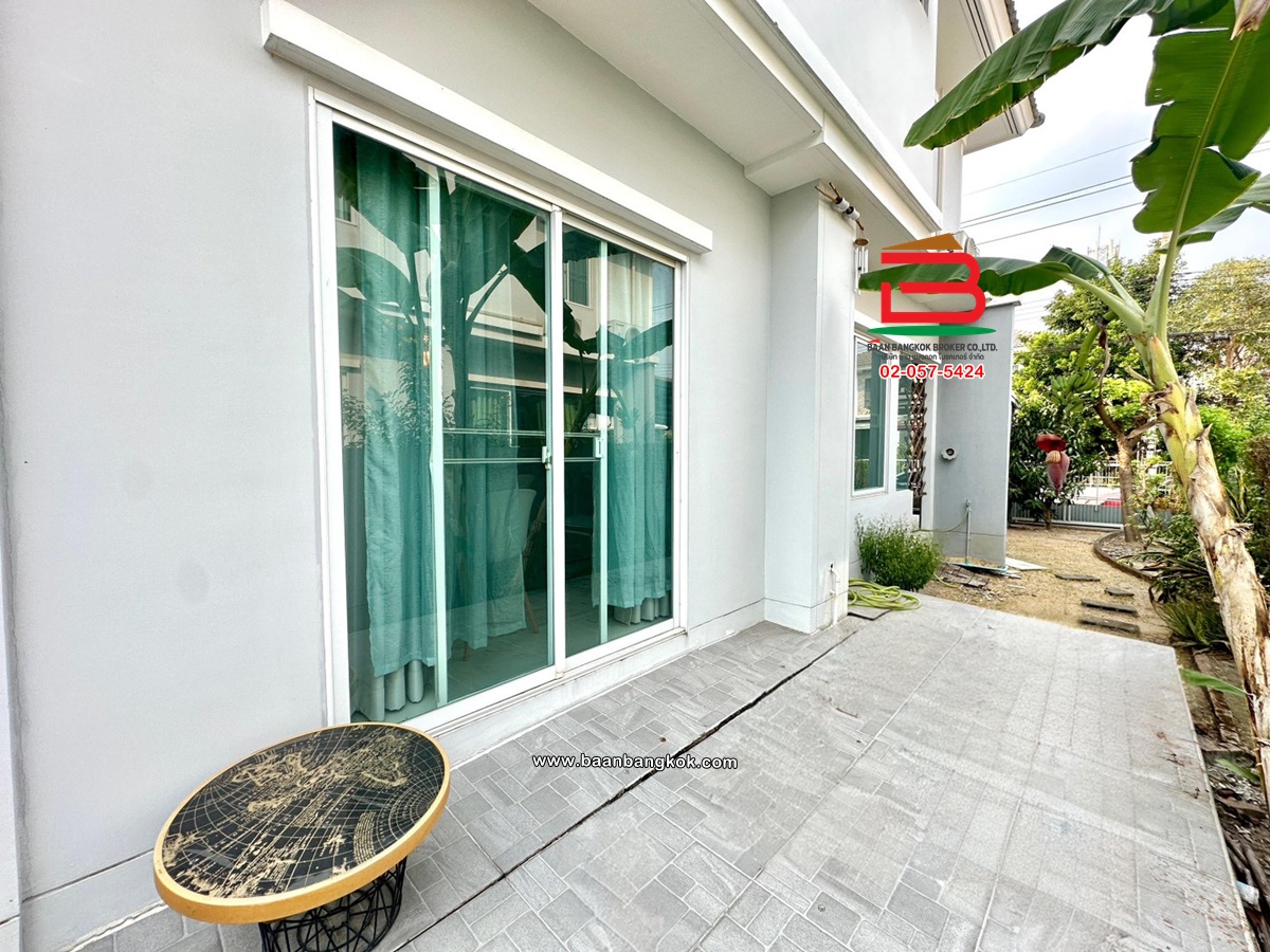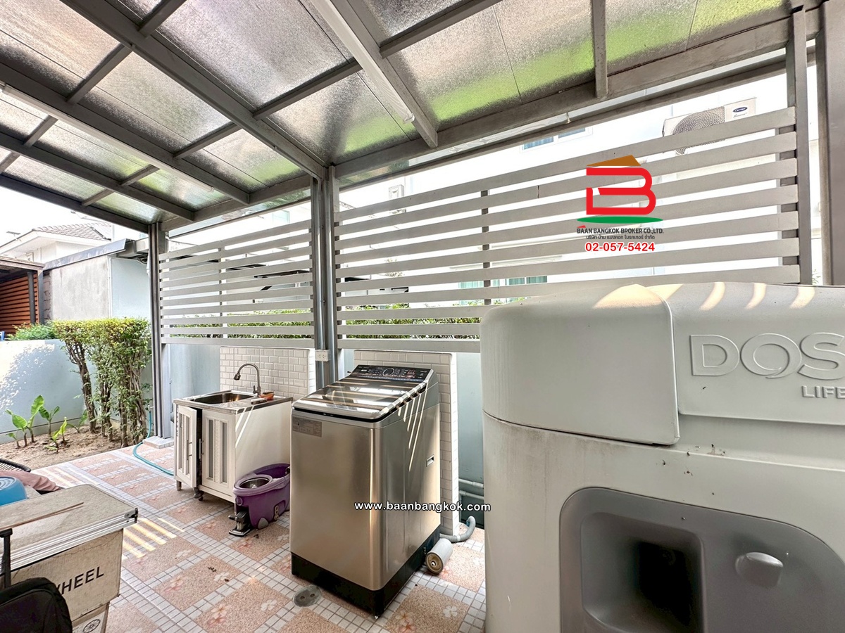 การตกแต่ง: ต่อเติมโรงจอดรถ และบิ้วอินภายในเรียบร้อย พร้อมอยู่ พร้อมเฟอร์นิเจอร์คุณภาพและเครื่องใช้ไฟฟ้า มีพื้นที่สนามหญ้าสีเขียวด้านข้างบ้าน บ้านเป็นสไตล์โมเดิร์น หน้าบ้านหันทางทิศเหนือ ติดตั้งปั๊มน้ำใหม่ แทงค์น้ำยี่ห้อ DOS รุ่นที่มีที่เก็บปั๊มในตัว พร้อมแอร์ 3 เครื่อง