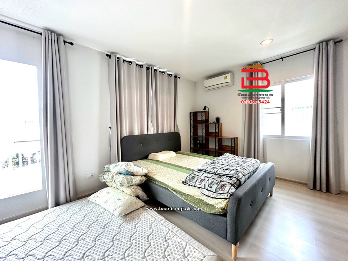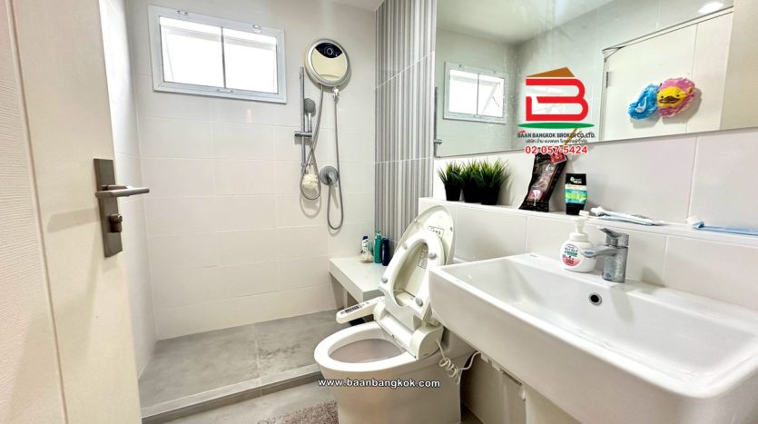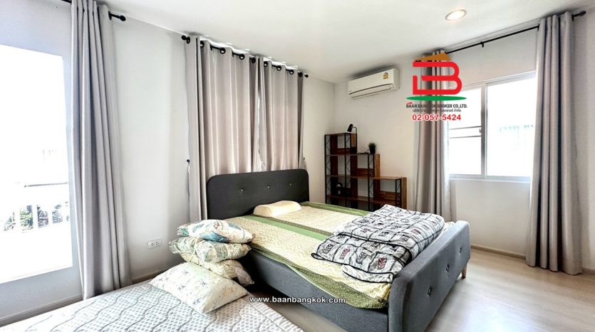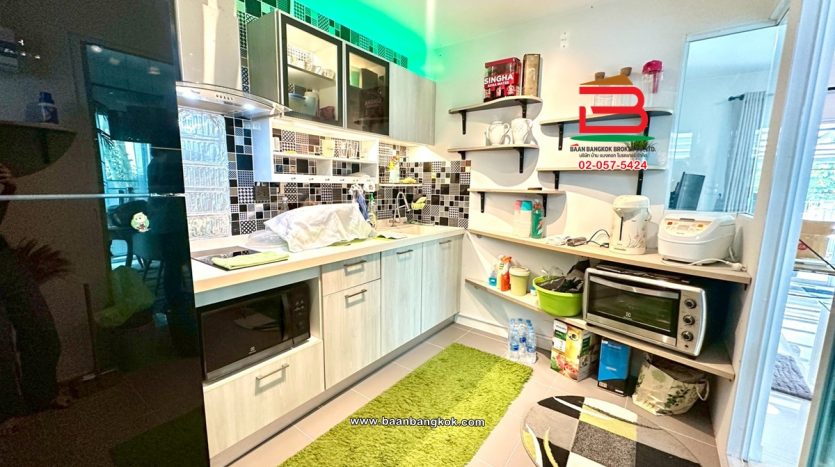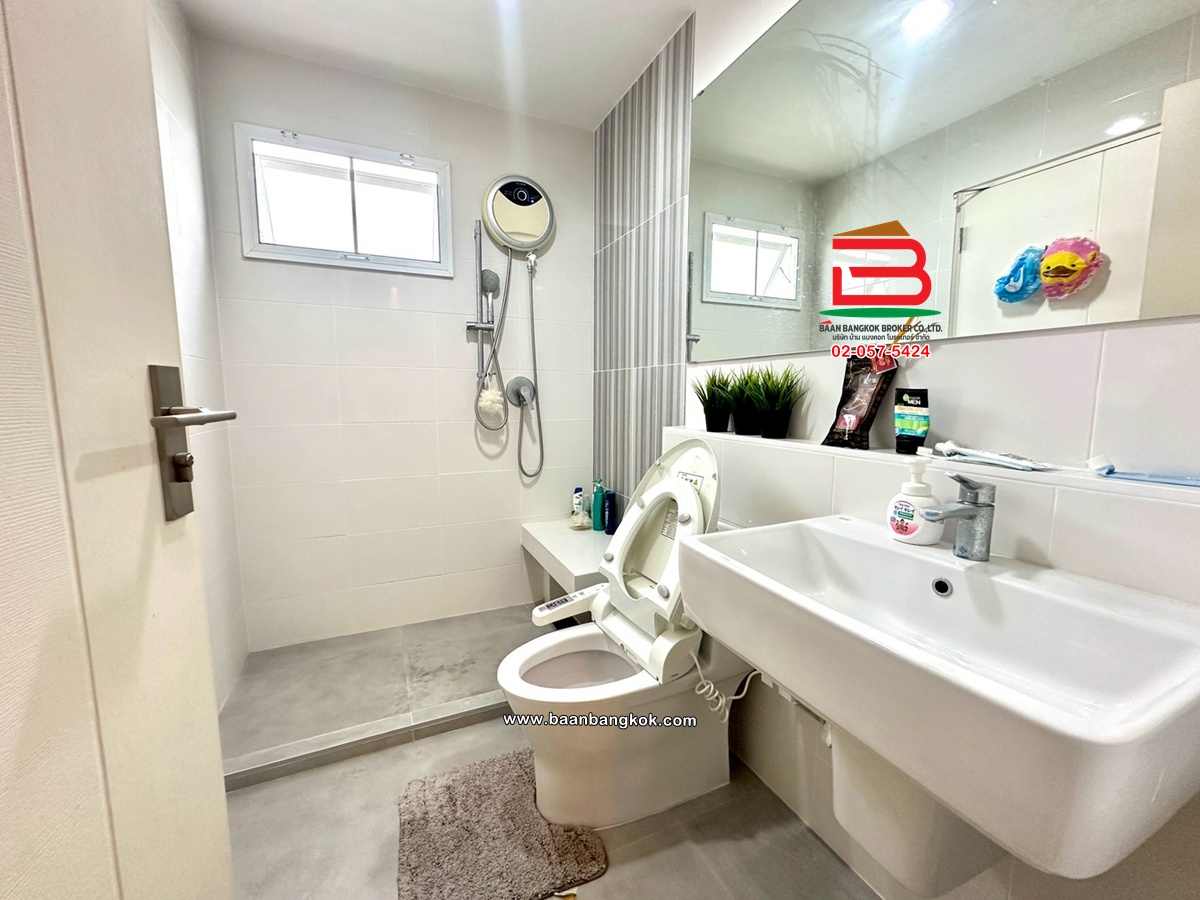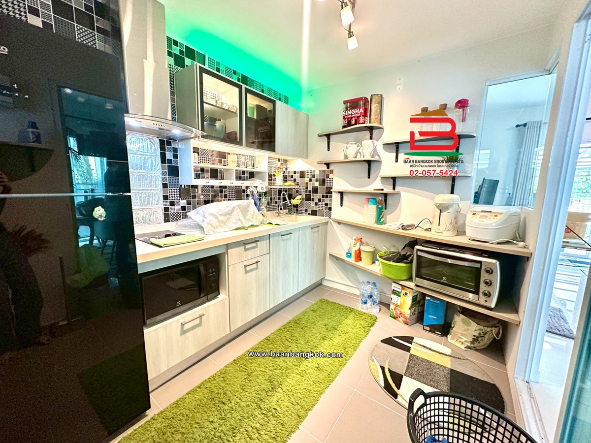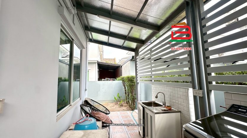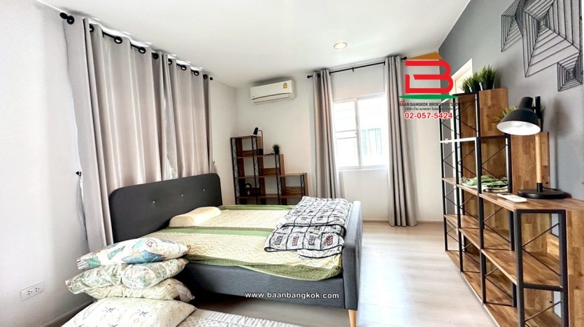 การตกแต่ง: ต่อเติมโรงจอดรถ และบิ้วอินภายในเรียบร้อย พร้อมอยู่ พร้อมเฟอร์นิเจอร์คุณภาพและเครื่องใช้ไฟฟ้า มีพื้นที่สนามหญ้าสีเขียวด้านข้างบ้าน บ้านเป็นสไตล์โมเดิร์น หน้าบ้านหันทางทิศเหนือ ติดตั้งปั๊มน้ำใหม่ แทงค์น้ำยี่ห้อ DOS รุ่นที่มีที่เก็บปั๊มในตัว พร้อมแอร์ 3 เครื่อง