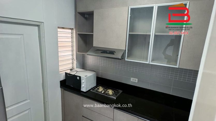 การตกแต่ง : เหมาะสำหรับทำสำนักงาน/บริษัท/อยู่อาศัย ขายพร้อมผู้เช่า (40,000 บาท/เดือน) ค่าส่วนกลางผู้เช่าเป็นผู้จ่ายเอง มี 3 ห้องนอน 4 ห้องน้ำ 1 ห้องครัว จอดรถได้ 2 คัน พร้อมแอร์ 6 เครื่อง เคาเตอร์ครัว ไมโครเวฟ ตู้เย็น ทำเลดี ติด MRT ลาดพร้าว (เดิน 200 เมตร) เข้าซอยไม่ลึก หมู่บ้านไม่วุ่นวาย (มี 46 หลัง) เงียบสงบ