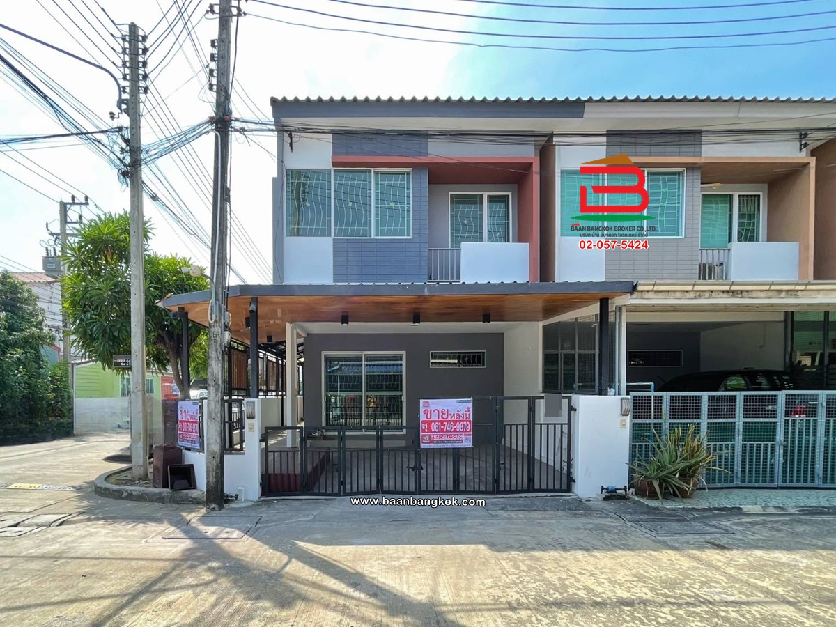 ประเภททรัพย์สิน : ทาวน์เฮาส์ 2 ชั้น (หลังมุม) บ้านหันหน้าทางทิศเหนือ มี 3 ห้องนอน 2 ห้องน้ำ 1 ห้องโถง 2 ที่จอดรถ