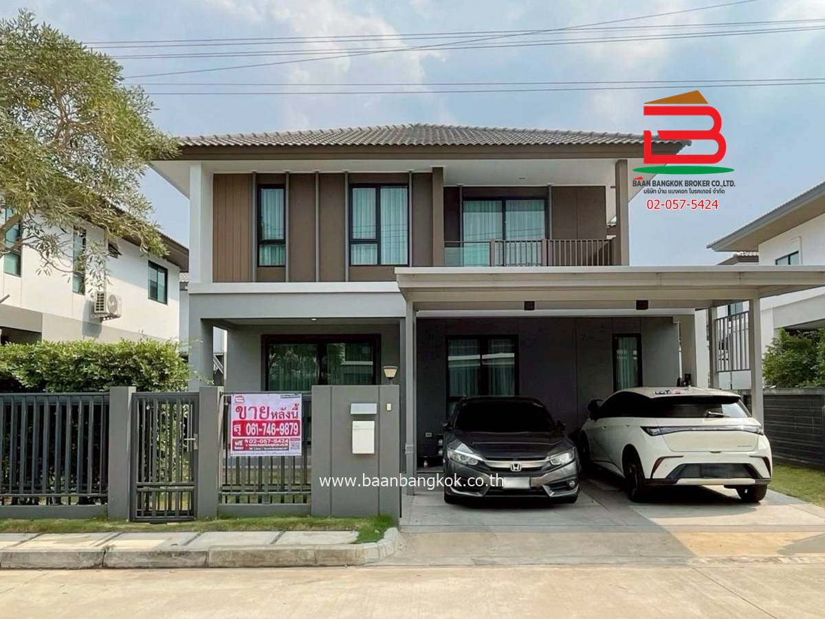ประเภททรัพย์สิน : บ้านเดี่ยว 2 ชั้น พร้อมอยู่ มี 4 ห้องนอน 3 ห้องน้ำ 2 ที่จอด 1 ห้องครัว หน้าบ้านหันทางทิศเหนือ จอดรถได้ 2 คัน มีบริเวณรอบบ้าน