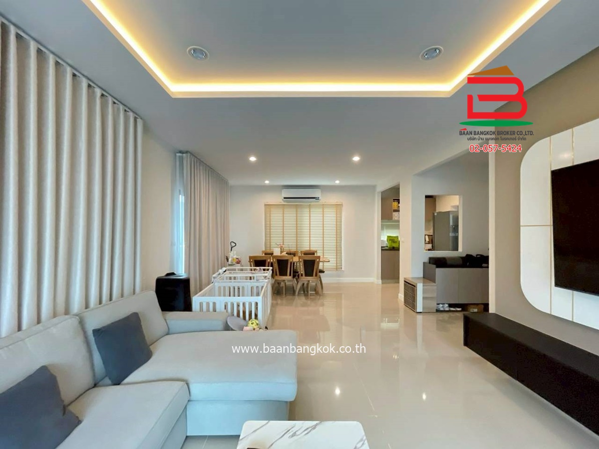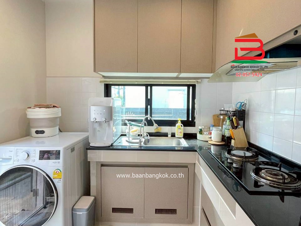 การตกแต่ง : ต่อเติมครัวไทยหรือลานซักล้างได้ ห้องรับแขกกว้าง ปูพื้นด้วยกระเบื้องแกรนิตโต้ ห้องครัวในบ้านบิ้วอินท์ แอร์ 5 เครื่อง เครื่องทำน้ำอุ่น 3 เครื่อง ปั้มน้ำ+แทงค์น้ำ ผ้าม่านกัน uv ทั้งหลัง ครัว ชั้นวางของ ตู้เสื้อผ้า บิ้วอินท์ เฟอร์นิเจอร์ครบพร้อมอยู่