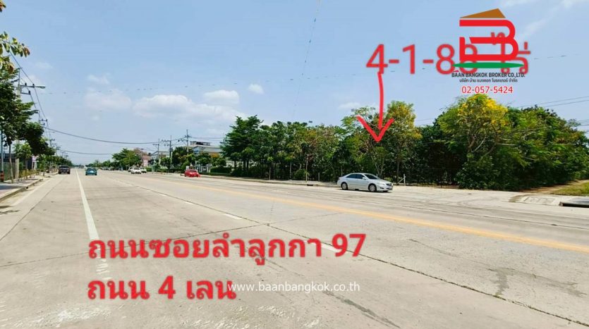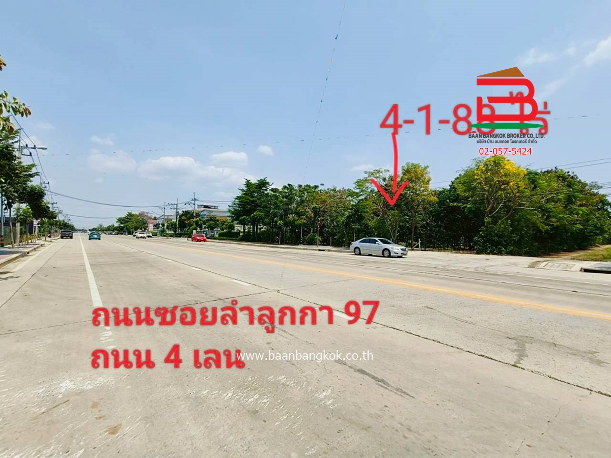 การตกแต่ง: ขายที่ดิน + สิ่งปลูกสร้าง เนื้อที่ 4-1-88 ไร่ พื้นที่สีเขียว หน้ากว้าง 40 เมตร ติดถนน 4 เลน (ซอยลำลูกกา 97) ขายที่ดินติดคลอง 6 กว้าง 40 เมตร ความลึกของที่ดิน 187 เมตร ภายในพื้นที่มีการพัฒนาเทถนนคอนกรีตกว้าง 5 เมตร ขนานแปลงที่ดินจากปากซอยลำลูกกา 97 ถึงท้ายที่ดินที่ติดคลอง 6 ขายพร้อมกับสิ่งปลูกสร้างอาคาร 1 ชั้น พื้นที่ใช้สอย 100 ตารางเมตร บ้านพักคนงาน 4 ห้องนอน 4 ห้องน้ำ ห้องน้ำสาธารณะ 3 ห้อง สระขนาด 10 * 15 เมตร พร้อมแทงบำบัดน้ำ และศาลากลางน้ำ (เจ้าของเดิมจะทำเป็นร้านอาหาร) คางของที่ดินติดกับลำรางมีน้ำตลอดปี ทำเลดีเดินทางเข้าออกสะดวก เหมาะซื้อต่อยอดทำร้านอาหารหรือ บ้านพักขนาดใหญ่ หรือทำโครงการหมู่บ้านจัดสรรขาย