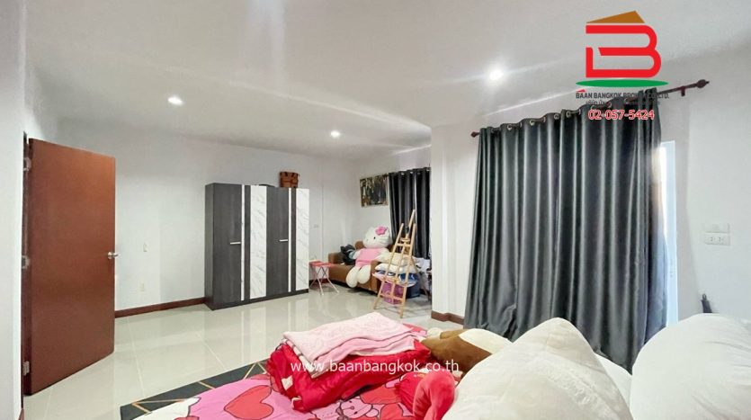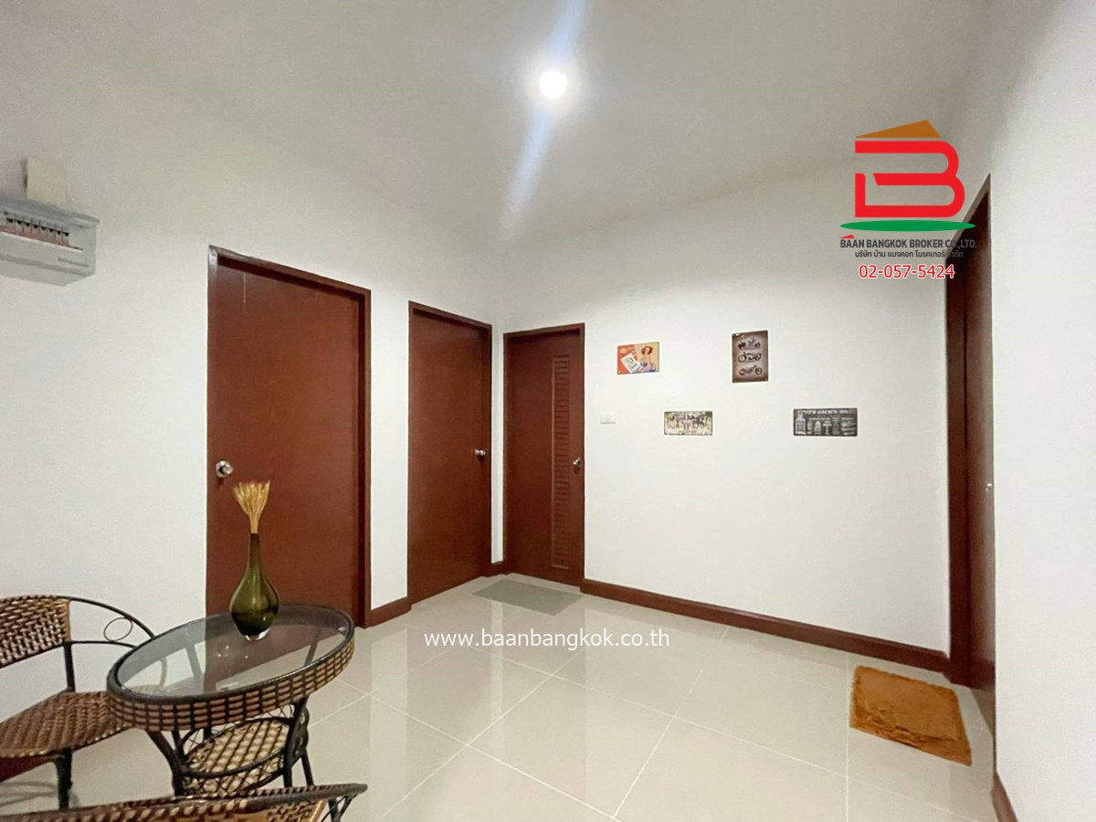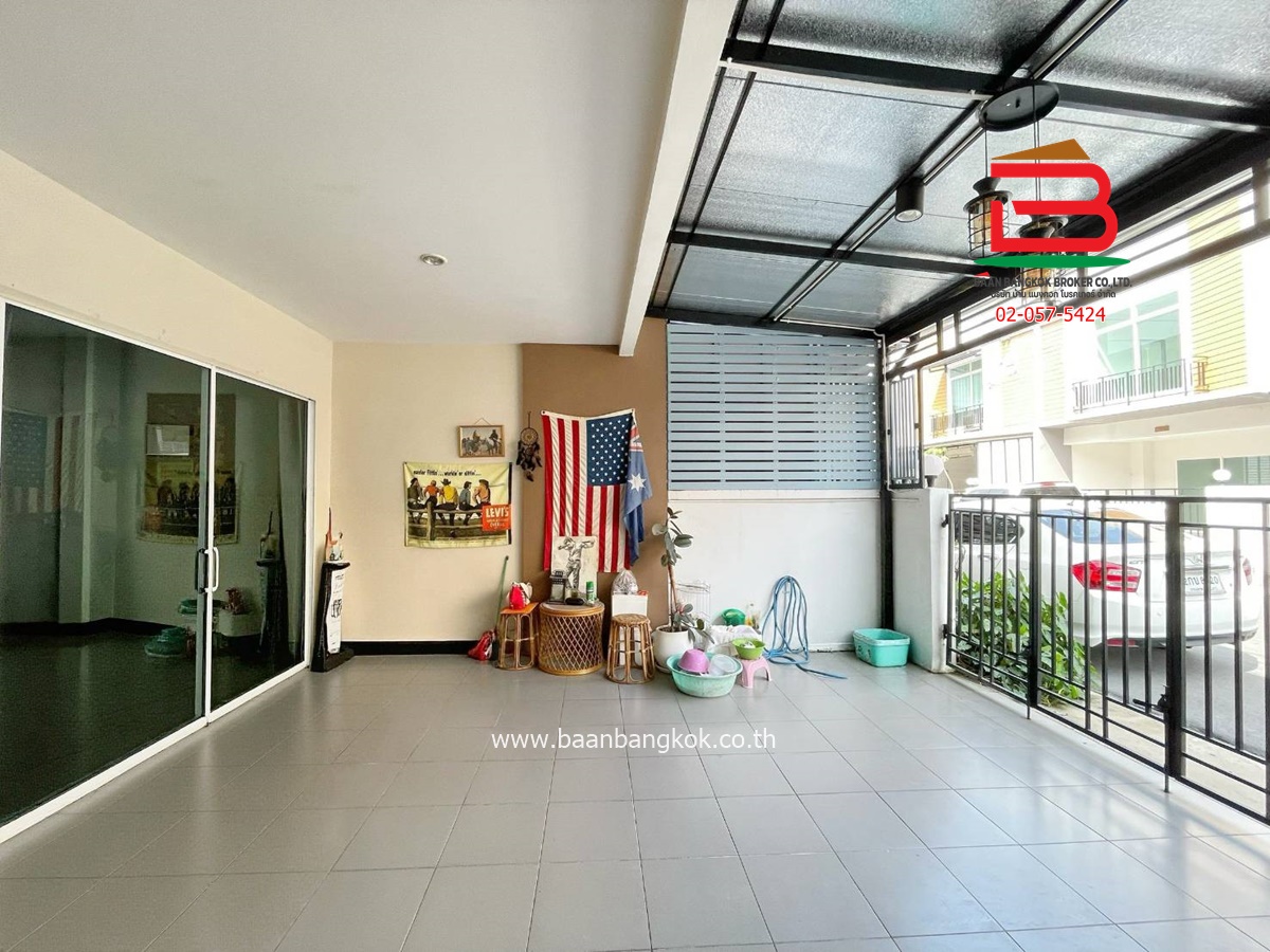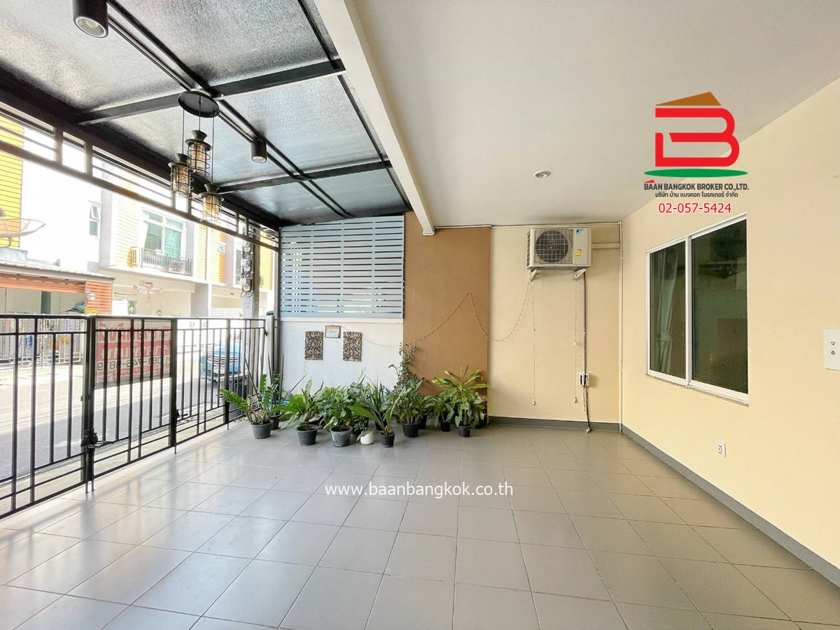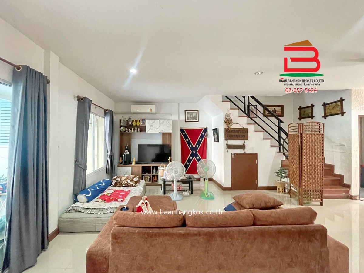 ประเภททรัพย์สิน : ทาวน์โฮม 2 ชั้น ไซส์ใหญ่สุด มีเพียง 8 หลังในโครงการ หน้ากว้าง 6.6 เมตร มี 3 ห้องนอน 3 ห้องน้ำ 1 ห้องโถง ต่อเติมด้านหน้าพร้อมปูกระเบื้องเต็มพื้นที่ลานจอดรถ ด้านหลังมีพื้นที่โล่งสามารถต่อเติมครัวได้ แถมฟรีเฟอร์นิเจอร์บางส่วน ติดปั้มน้ำ, แท็งค์น้ำ, แอร์ มีระเบียงและจอดรถได้ 2 คัน บ้านหันหน้าทางทิศเหนือ ในโครงการมีสิ่งอำนวยความสะดวก อาทิ เช่น รปภ.24ชม. การเดินทางเข้า-ออกสะดวก