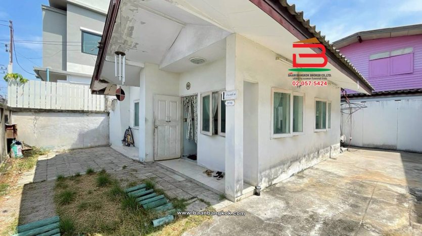 ประเภททรัพย์สินที่ดินพร้อมบ้าน ชั้นเดียว ขนาด 2 ห้องนอน 1 ห้องน้ำ 1 ห้องโถง จอดรถได้ 3 คัน ทำเลดี ใกล้ตลาดลาดพร้าว โชคชัย4 เดินทางเข้าออกสะดวก