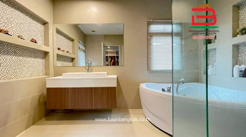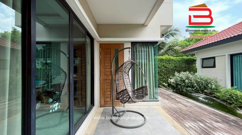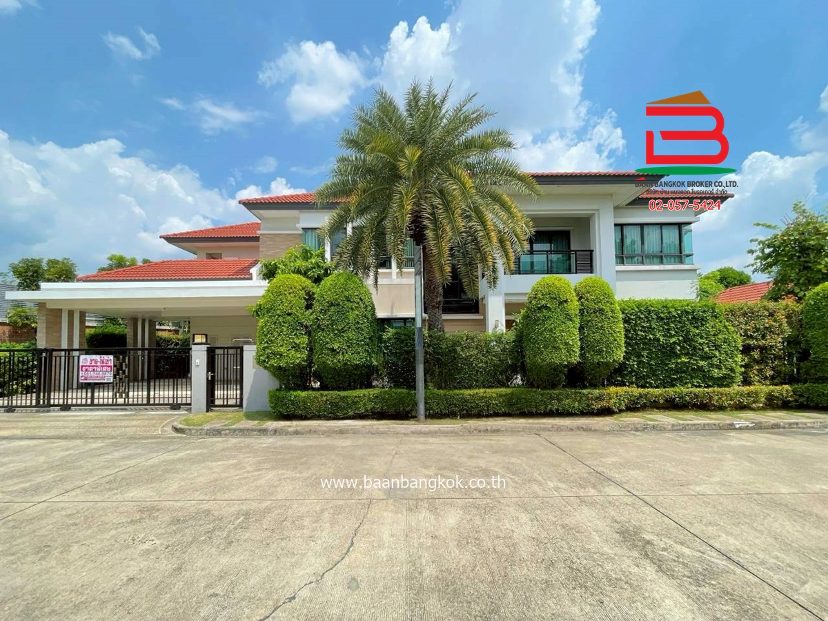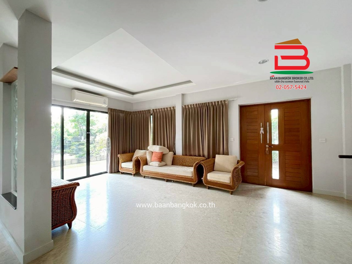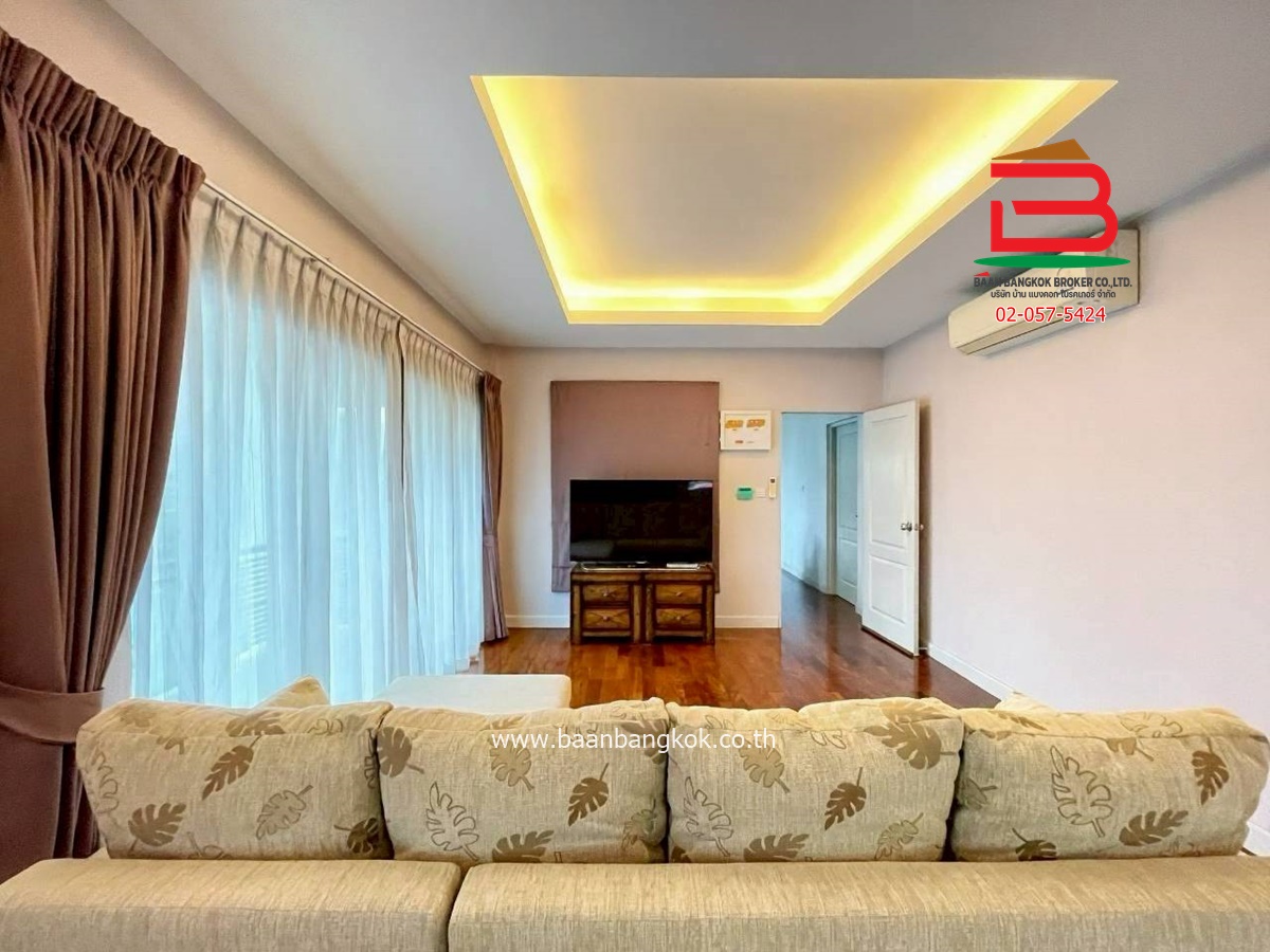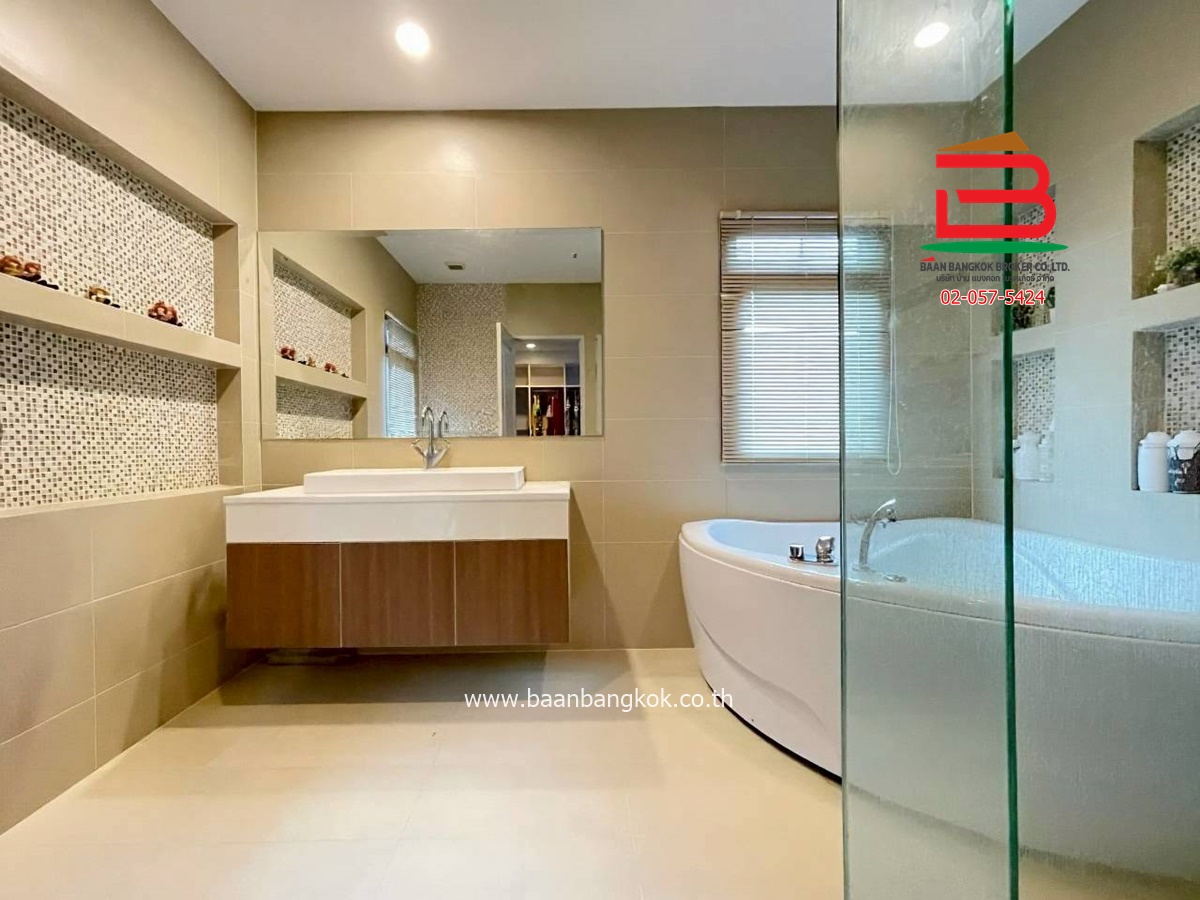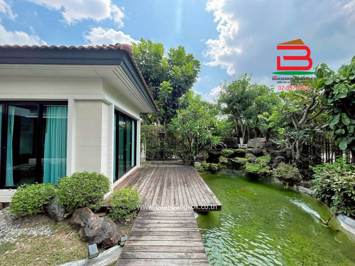 การตกแต่ง : บ้านเดี่ยวสุดหรู สไตล์รีสอร์ท (เจ้าของเปิดรับต่อรองราคาได้) บรรยากาศร่มรื่น เป็นส่วนตัว มีเรือนรับรองแยกส่วน พร้อมน้ำตกและบ่อปลา เหมาะสำหรับรองรับแขก หรือเป็นพื้นที่พักผ่อนภายในครอบครัว บิ้วอินตู้เสื้อผ้าทุกห้อง ฟรีเฟอร์นิเจอร์บางส่วน เช่น ตู้เสื้อผ้า เตียง โซฟา โต๊ะรับประทานอาหาร แอร์ 11 เครื่อง เครื่องทำน้ำอุ่น 5 เครื่อง ผ้าม่านทั้งหลัง