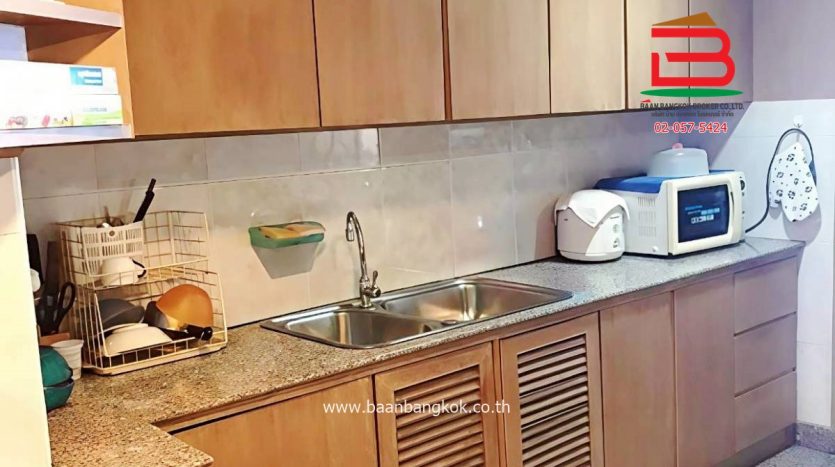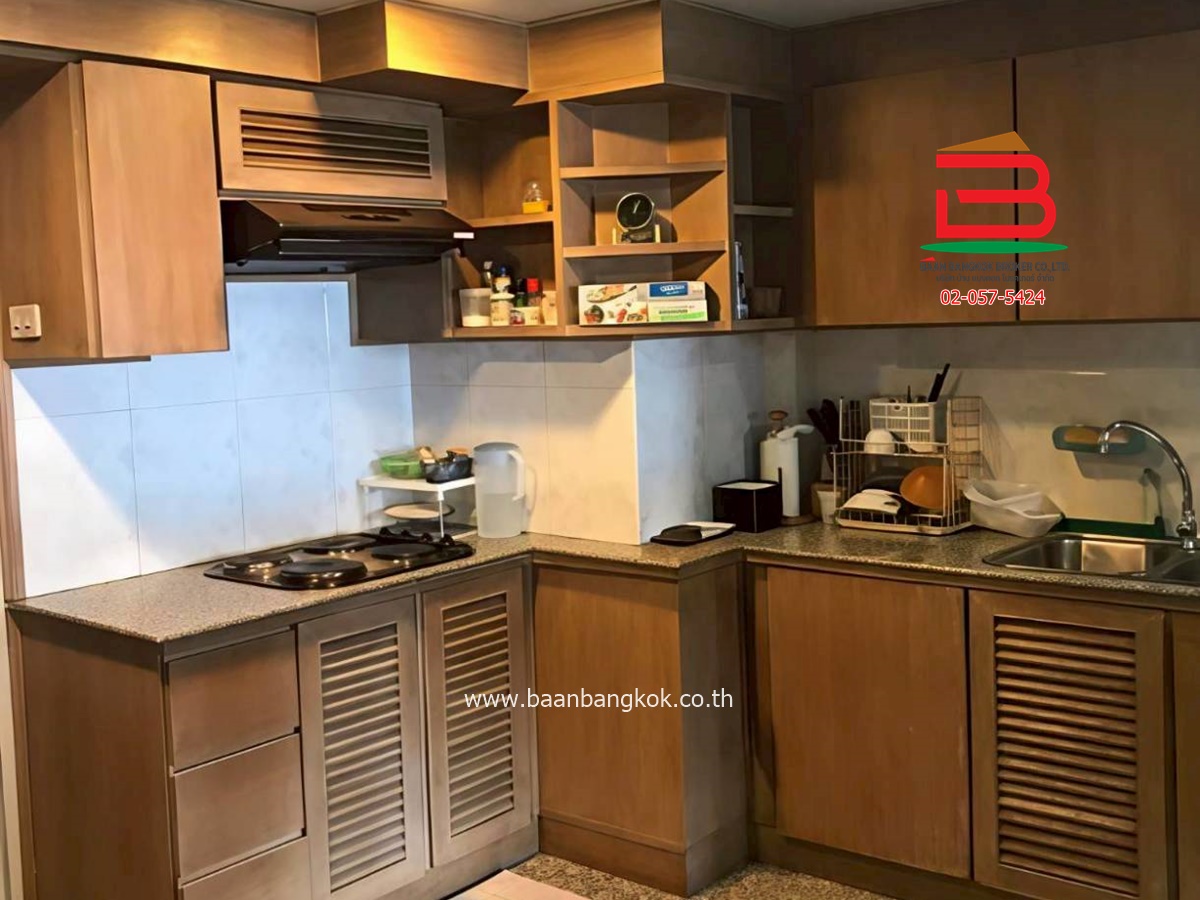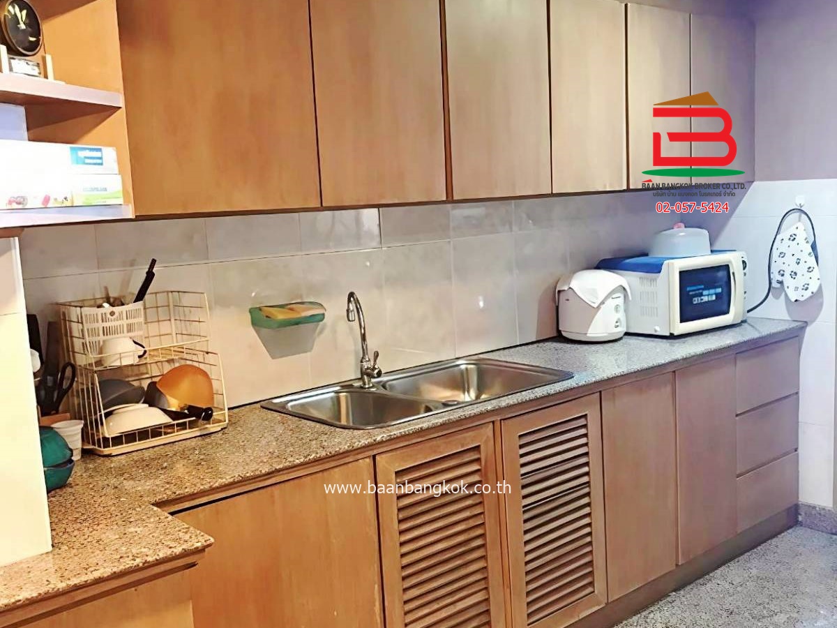 การตกแต่ง : พื้นปูด้วยกระเบื้องหินอ่อนทุกห้อง ครัวบิ้วอิน ภายในมีเฟอร์นิเจอร์ครบ ตู้ เตียง โซฟา เครื่องใช้ไฟฟ้า ตู้เย็น ไมโครเวฟ เครื่องซักผ้า เครื่องทำน้ำ