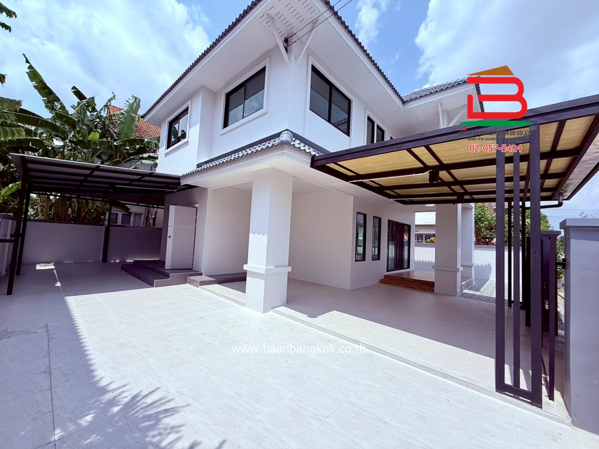 การตกแต่ง : รีโนเวทใหม่ ต่อเติมโรงจอดรถ ชั้นพื้นชั้นล่าง-บนปูด้วยกระเบื้องแกรนิตโต้ ติดปั้มน้ำ แท๊งน้ำ เหล็กดัด แอร์ 1 เครื่อง