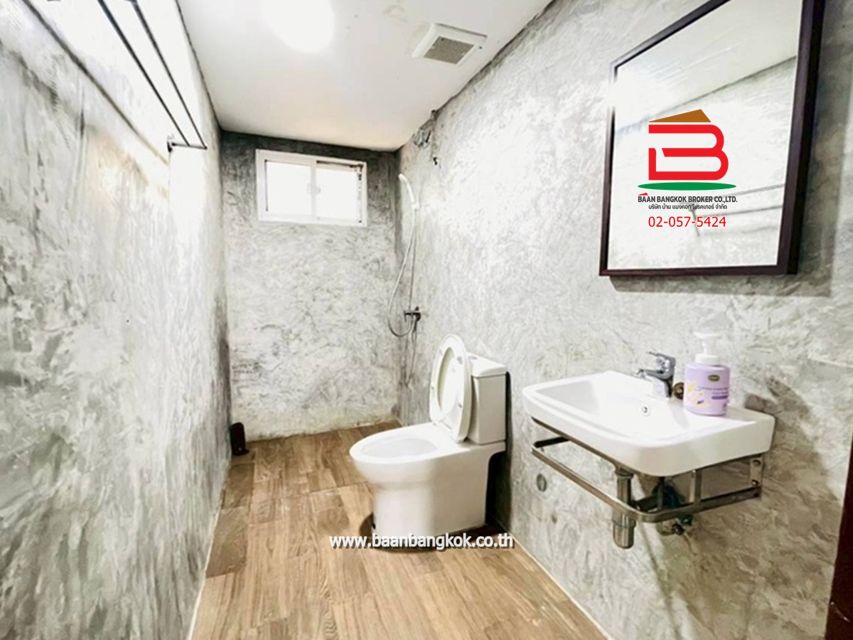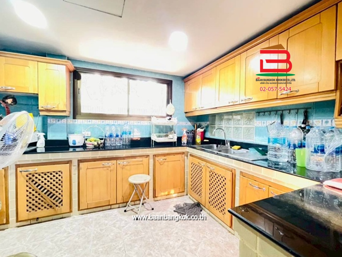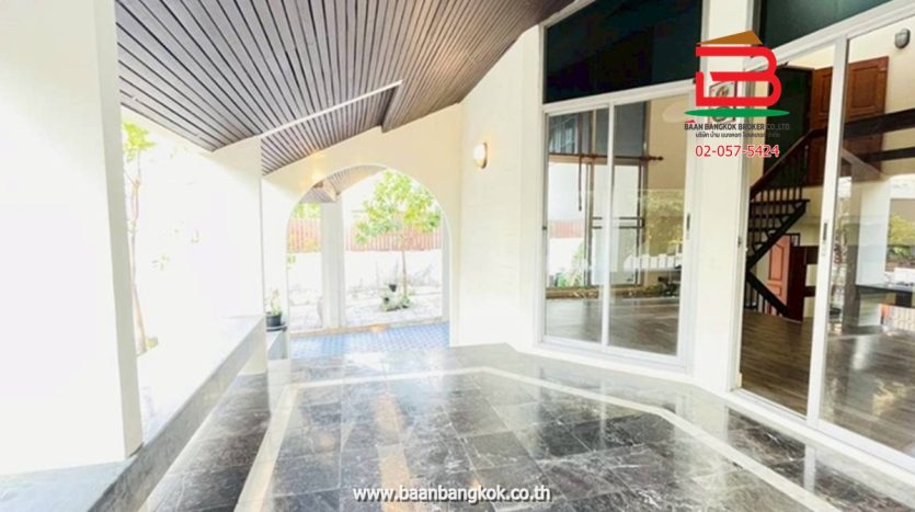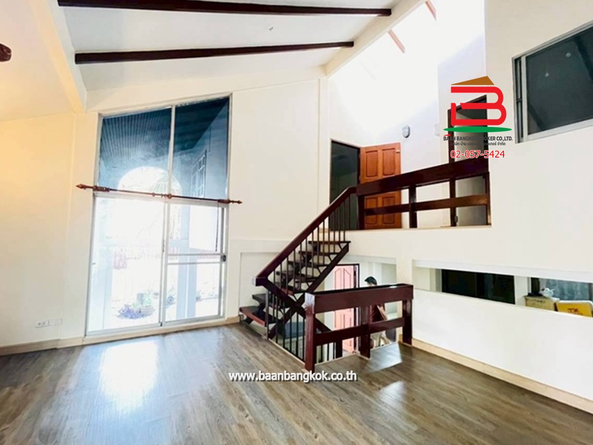 การตกแต่ง : ห้องครัวบิวท์อินสวยงาม พร้อมใช้หลังบ้าน มีพื้นที่ใช้สอยกว้างขวางรอบตัวบ้านมีสนามรอบบ้านพื้นปูแกรนิตโต้ ติดมุ้งลวด บันไดในบ้านเป็นไม้เนื้อแข็ง ชั้น 2 พื้นปูกระเบื้องยางไม้ มี 2 ห้องนอน มีระเบียงสร้างไว้เป็นมุมนั่งเล่น และห้องนอนเล็กติดมุ้งลวด มีห้องน้ำ 1 ห้อง(ทะลุหากัน) 1 ห้องโถง ทำเป็นฟิตเนสออกกำลังกายได้ ชั้นล่างมีห้องน้ำในบ้านหนึ่งห้อง ห้องน้ำนอกบ้านอีก 1 ห้องและห้องเก็บของ มีระเบียงหน้าบ้าน มุมบ้านเล่นระดับโปร่งโล่งสวยงาม ในโครงการมีสิ่งอำนวยความสะดวก อาทิ เช่น CCTV รปภ.24ชม. สนามเด็กเล่น สโมสร