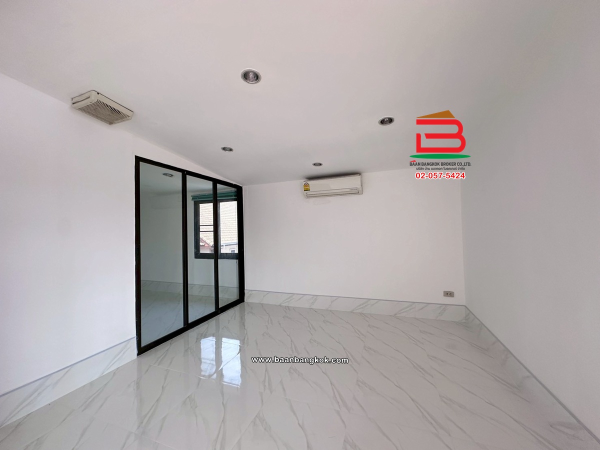 การตกแต่งบ้านรีโนเวทแล้ว ตกแต่งตกเติม พร้อมอยู่ พื้นล่างปูด้วยกระเบื้องแกรนิตโต้ และปาร์เก้ไม้แดง พร้อมแอร์ 8 เครื่อง ติดมุ้งลวด-เหล็กดัด มีปั้มน้ำ-แท็งค์น้ำ