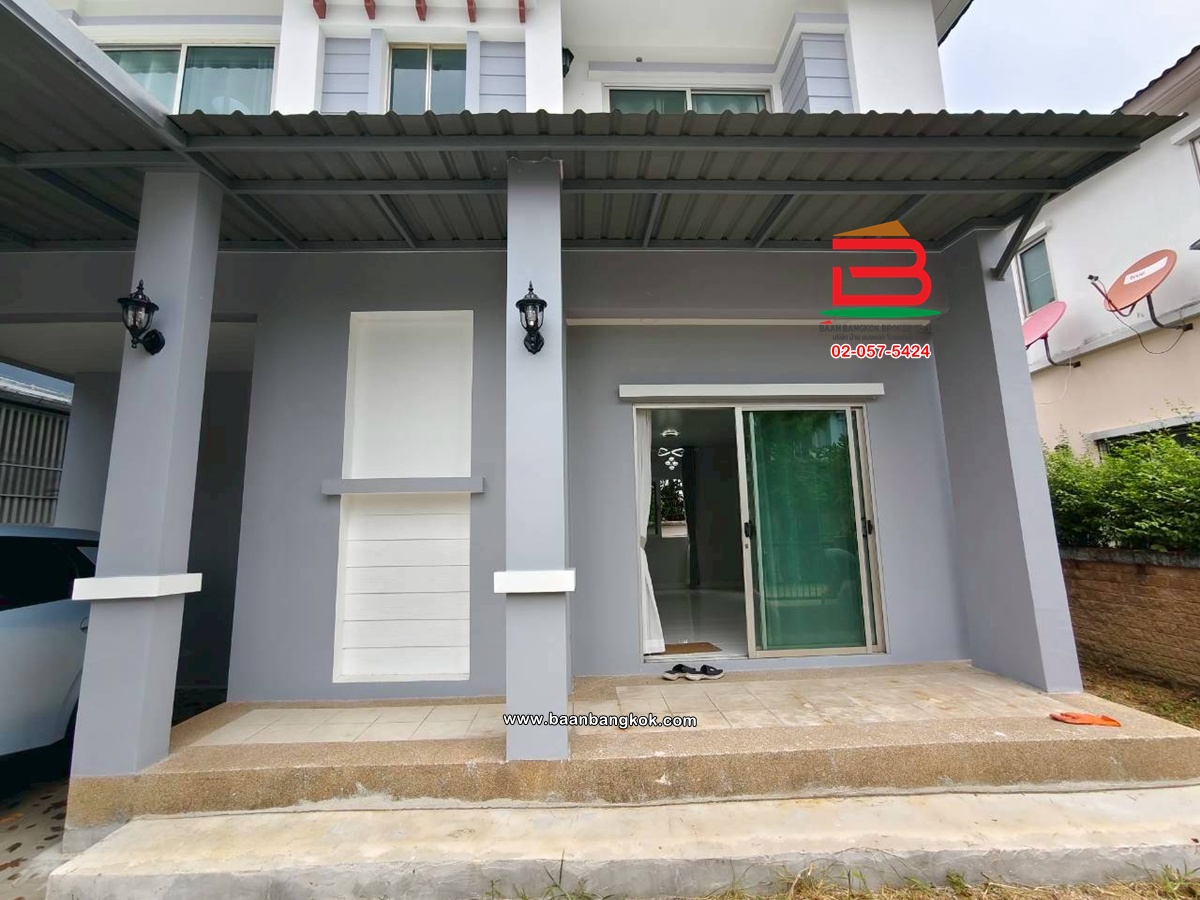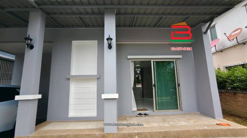 ประเภททรัพย์สิน : บ้านเดี่ยว 2 ชั้น 3 ห้องนอน 2 ห้องน้ำ 1 ห้องครัว 1 ที่จอดรถ พื้นที่ใช้สอย 120 ตรม. ใช้ล่าง 1 ห้องโถง 1 ห้องครัว 1 ห้องน้ำ พื้นปูด้วยกระเบื้องคอตโต้ มีมุงลวด บันไดไม้ ชั้น 2 มี 3 ห้องนอน 1 ห้องน้ำ พื้นลามิเนต มีมุ้งลวด ผ้าม่านใหม่ทั้งหลัง ใกล้ห้างเซ็นทรัลเวสต์เกต ใกล้รถไฟฟ้าสายสีม่วง เดินทางเข้าออกได้หลายเส้นทาง