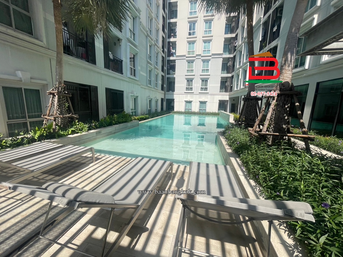 การตกแต่ง : ตกแต่งสวย พื้นปู SPC ติดผ้าม่าน+โคมไฟ มีเฟอร์นิเจอร์และเครื่องใช้ไฟฟ้า เช่น โซฟา ชั้นวางทีวี โต๊ะทานข้าว เครื่องฝอกอากาศ ตู้เย็น เครื่องทำน้ำอุ่น ไมโครเวฟ แอร์ 1 เครื่อง และมีสิ่งอํานวยความสะดวกในโครงการ อาทิ รปภ.24 ชม., ฟิตเนส, สระว่ายน้ำ,สนามเด็กเล่น,CCTV, ที่จอดรถ, ลิฟท์, ห้องสันทนาการ, ห้องชมภาพยนต์, ห้องสมุด, ห้องสำหรับเด็กเล่น, ห้องประชุม