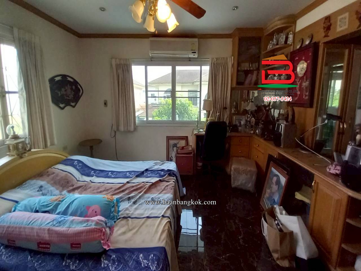 การตกแต่ง : บ้านเดี่ยว 2 ชั้นเนื้อที่ 75 ตารางวาพื้นที่ใช้สอย 250 ตารางเมตร ฟังก์ชั่นประกอบด้วย 5 ห้องนอน 3 ห้องน้ำ 1 ห้องครัว 1 ห้องโถง ทำเลที่ตั้งทรัพย์อยู่ซอย 17 ของโครงการอยู่ติดคลับเฮ้าส์พื้นห้องชั้นล่างจะปูด้วยกระเบื้อง ส่วนพื้นห้องชั้นบน เป็นพื้นปาเก้ไม้แดง ฝ้าเพดานเป็นฝ้าเรียบ ภายในบ้านติดเหล็กตัดและมุ้งลวดพร้อมผ้าม่านให้เรียบร้อย ภายในบ้าน ตู้โชว์ชั้นวางของบิ้วอินให้เรียบร้อย มีพื้นที่บริเวณรอบข้างบ้านสามารถจัดเป็นมุมพักผ่อน มุมไม้ดอกไม้ประดับ สามารถนั่งปิ้งย่างชาบูได้ตาม อัธยาศัย เพื่อนบ้านน่ารักอัธยาศัยดี สิ่งอำนวยความสะดวกอาทิเช่นคลับเฮ้าส์สระว่ายน้ำสวนสาธารณะ ระบบรักษาความปลอดภัยตลอด 24 ชั่วโมงและกล้อง CCTV สภาพแวดล้อมเป็นหมู่บ้านเงียบสงบร่มรื่นมีระบบรักษาความปลอดภัยที่ดีโครงการคุณภาพจาก แลนด์แอนด์เฮ้าส์ โลเคชั่นที่ตั้งทรัพย์อยู่ในแหล่งชุมชนที่เจริญแวดล้อมไปด้วยห้างสรรพสินค้าชั้นนำศูนย์หน่วยงานราชการต่างๆตลาดนัดชุมชนการเดินทางเข้าออกสะดวกสบายหลายเส้นทาง” ทรัพย์สวยทำเลดีน่าลงทุน “