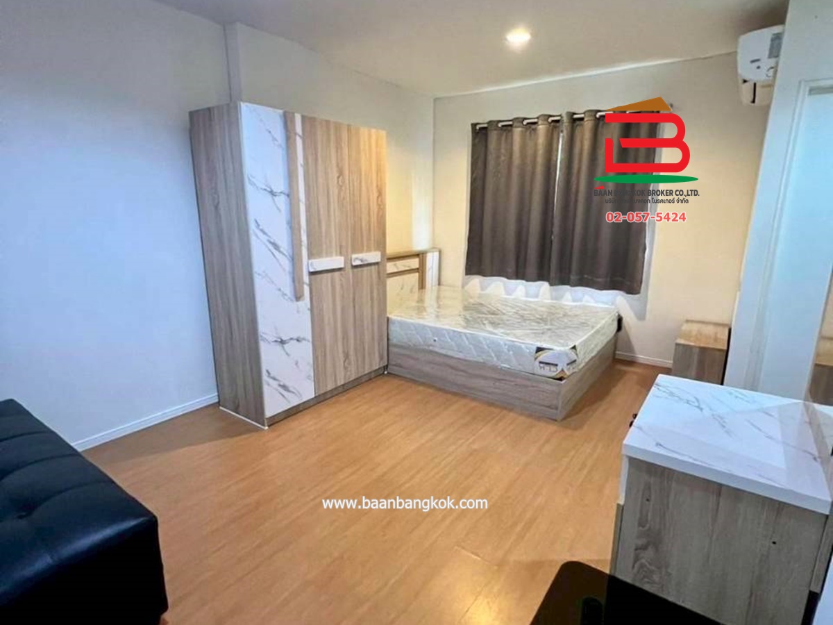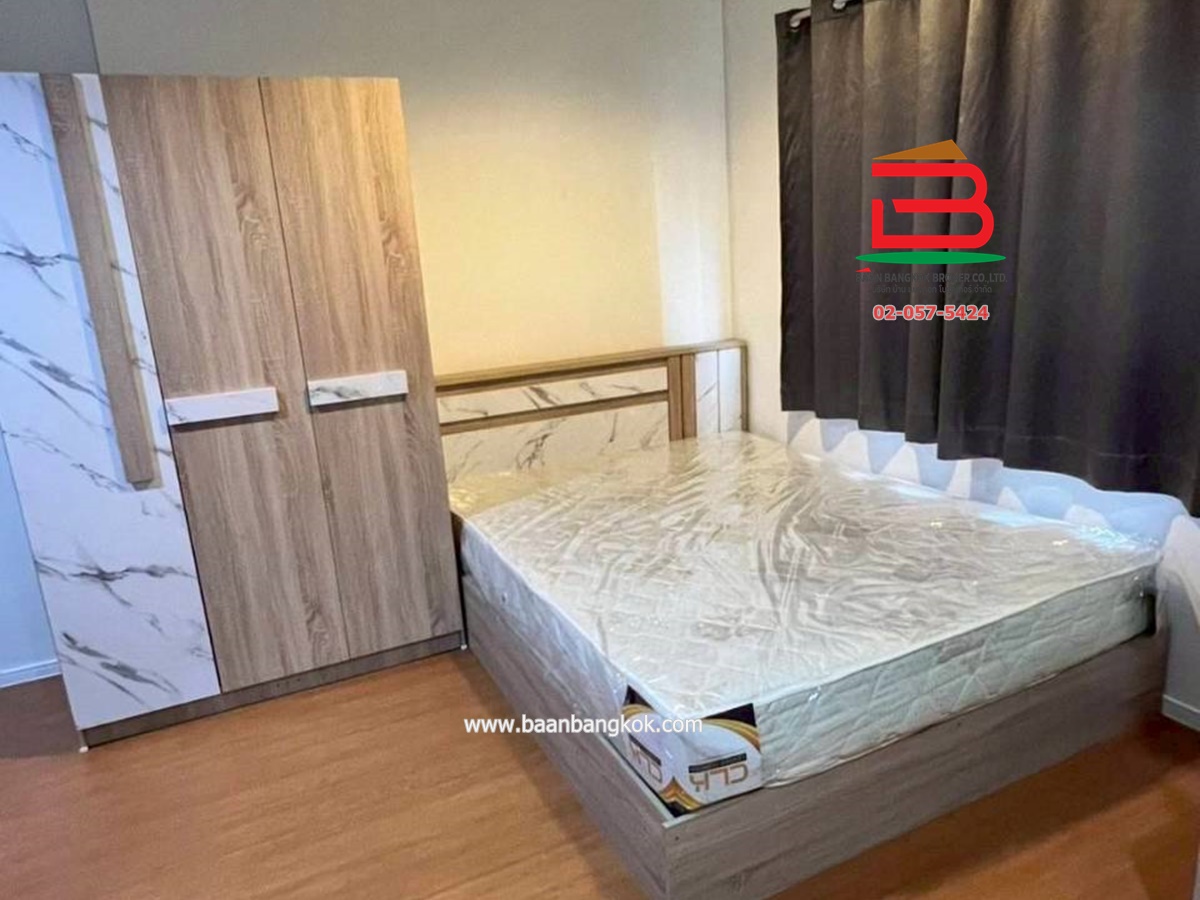 การตกแต่ง: ตกแต่งสวย พร้อมอยู่ พื้นปูลามิเนต เคาเตอร์ครัวบิวท์อิน พร้อมเฟอร์นิเจอร์ และเครื่องใช้ไฟฟ้า หิ้วกระเป๋าเข้าอยู่ได้เลย เข้าออกด้วยระบบคีย์การ์ด สิ่งอำนวยความสะดวกในโครงการ: สวนสาธารณะ ฟิตเนส สระว่ายน้ำ สนามฟุตบอล สนามเทนนิส ที่จอดรถ 7-11 CCTV พนักงานรักษาความปลอดภัย24ชั่วโมง